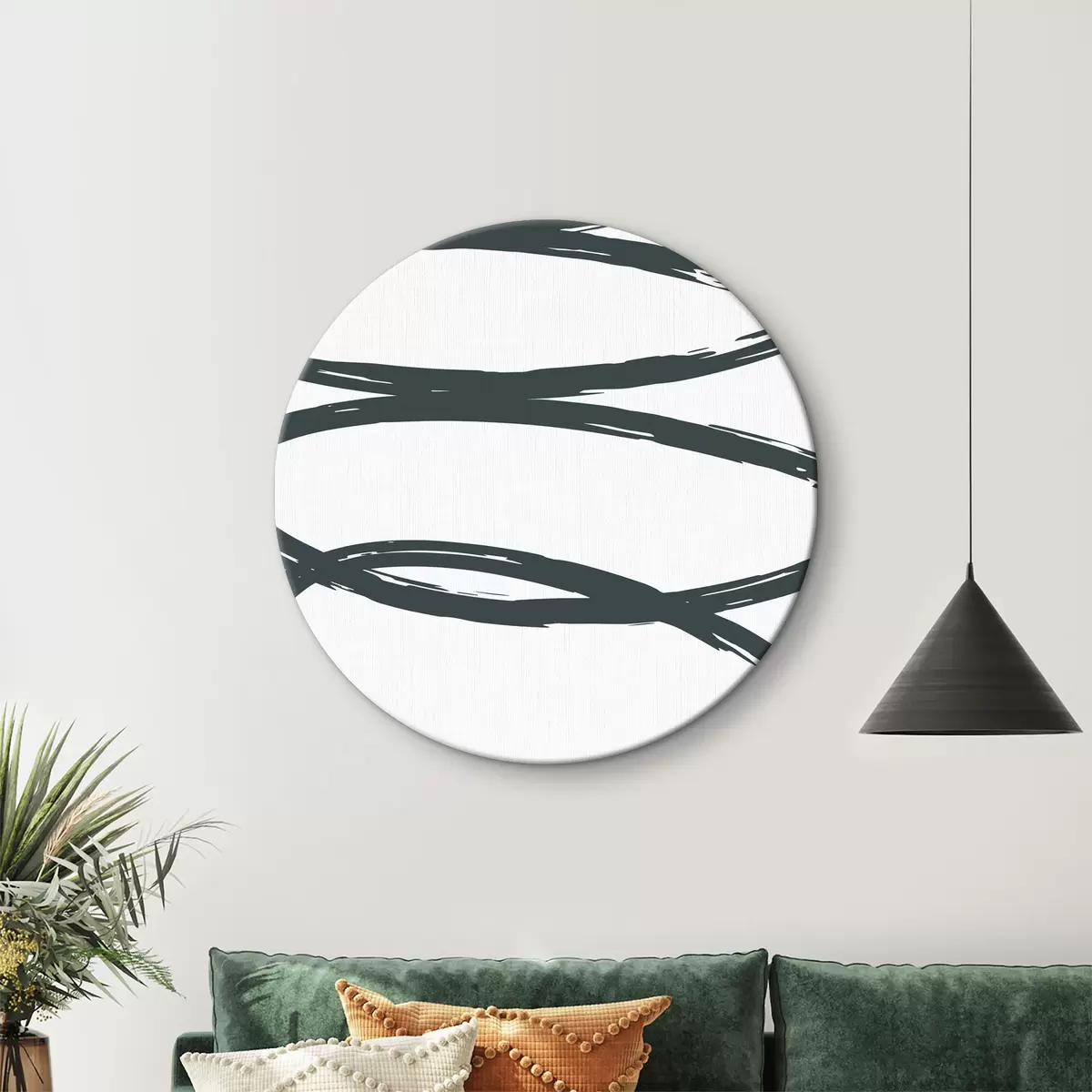Tableaux rondes Tourbillons abstraits en vert monochrome r36462