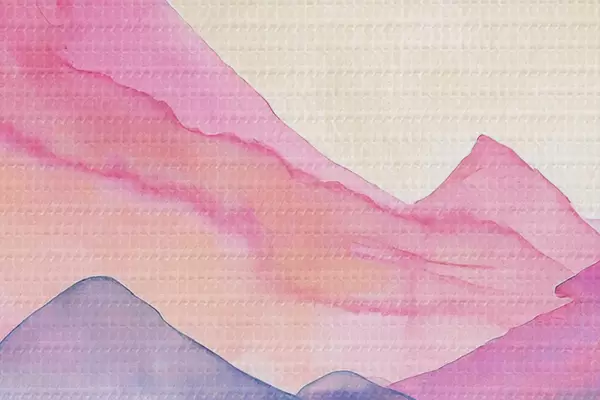 Tableaux rondes Aquarelle paysage de montagne, lever de soleil, couleurs douces violet, rose et bleu r36496