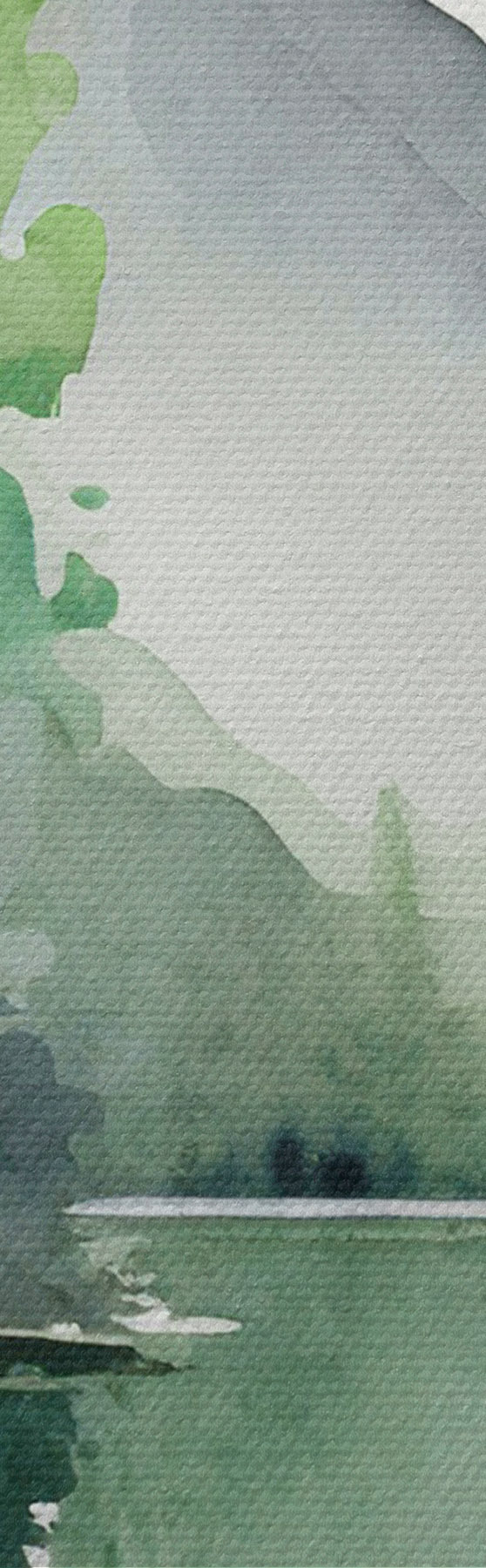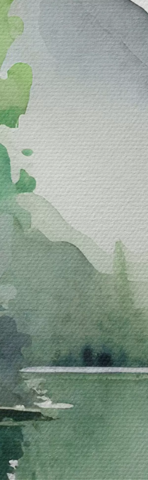 Tableaux rondes Aquarelle d'un lac et d'une forêt, printemps, vert naturel, couleurs douces Nr r36503