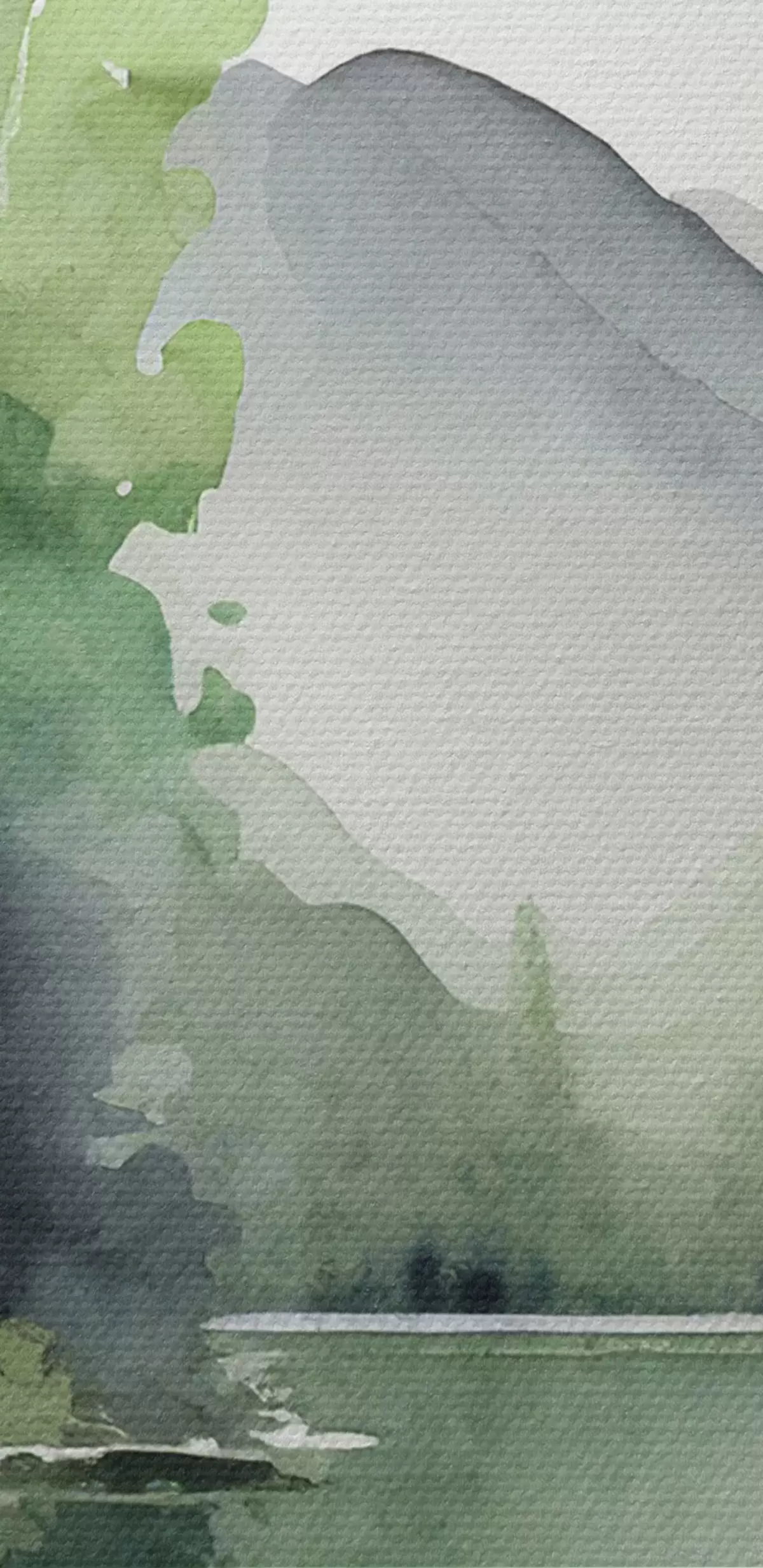 Tableaux rondes Aquarelle d'un lac et d'une forêt, printemps, vert naturel, couleurs douces r36503