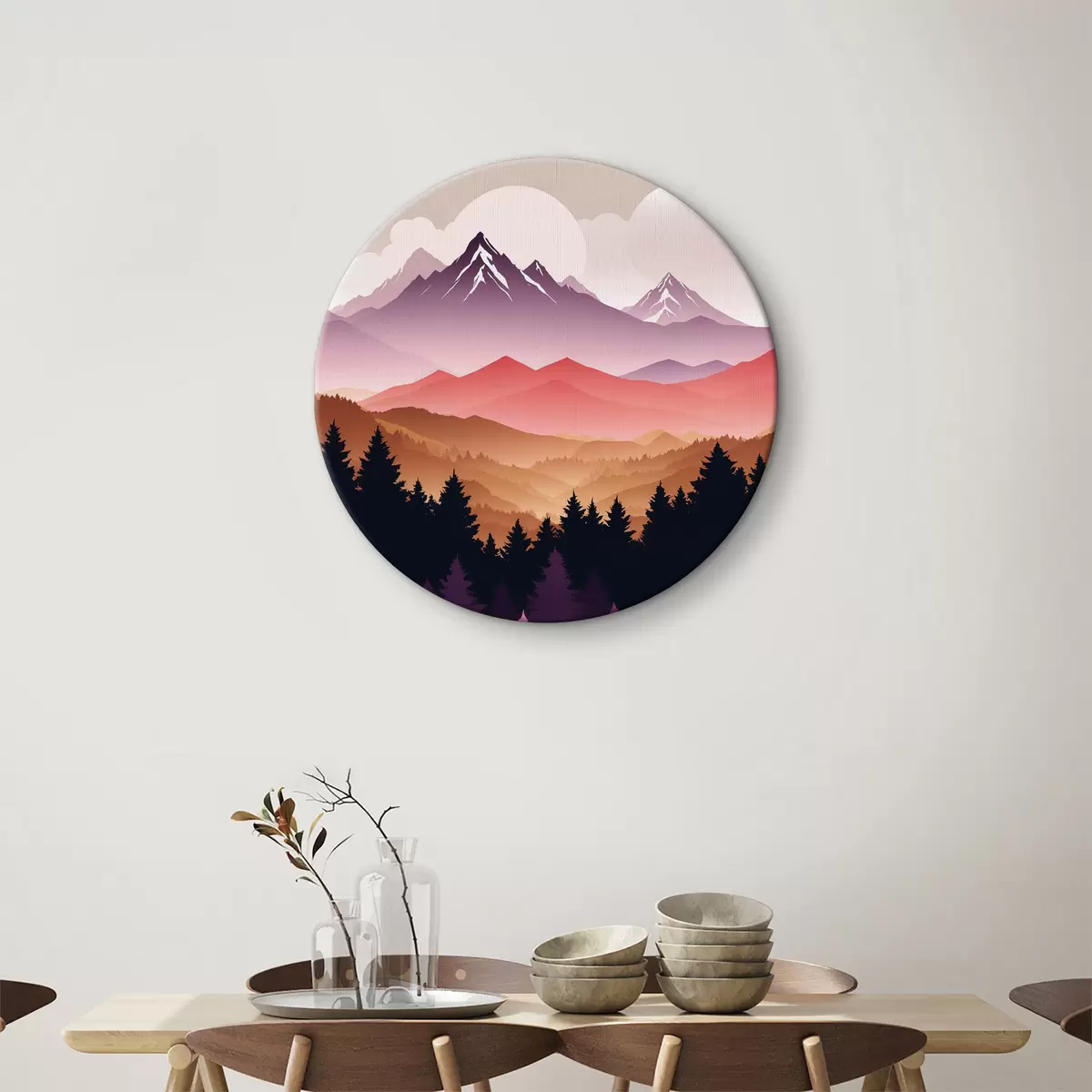 Tableaux rondes Coucher de soleil sur les montagnes paisibles r36527
