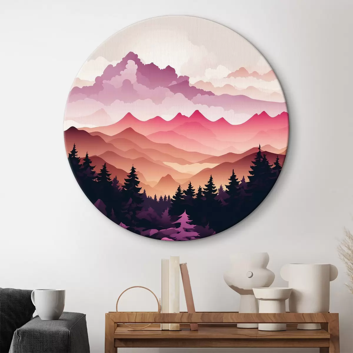 Tableaux rondes Coucher de soleil sur les montagnes paisibles Nr r36528