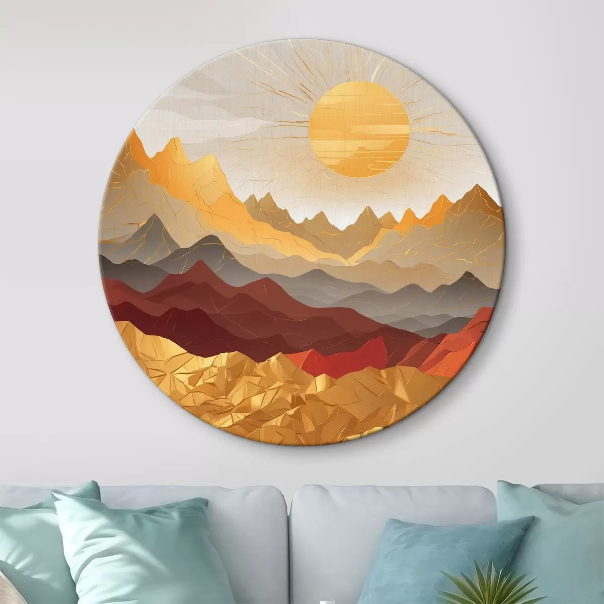 Tableaux rondes Lever de soleil sur un paysage géométrique de montagne Nr r36529