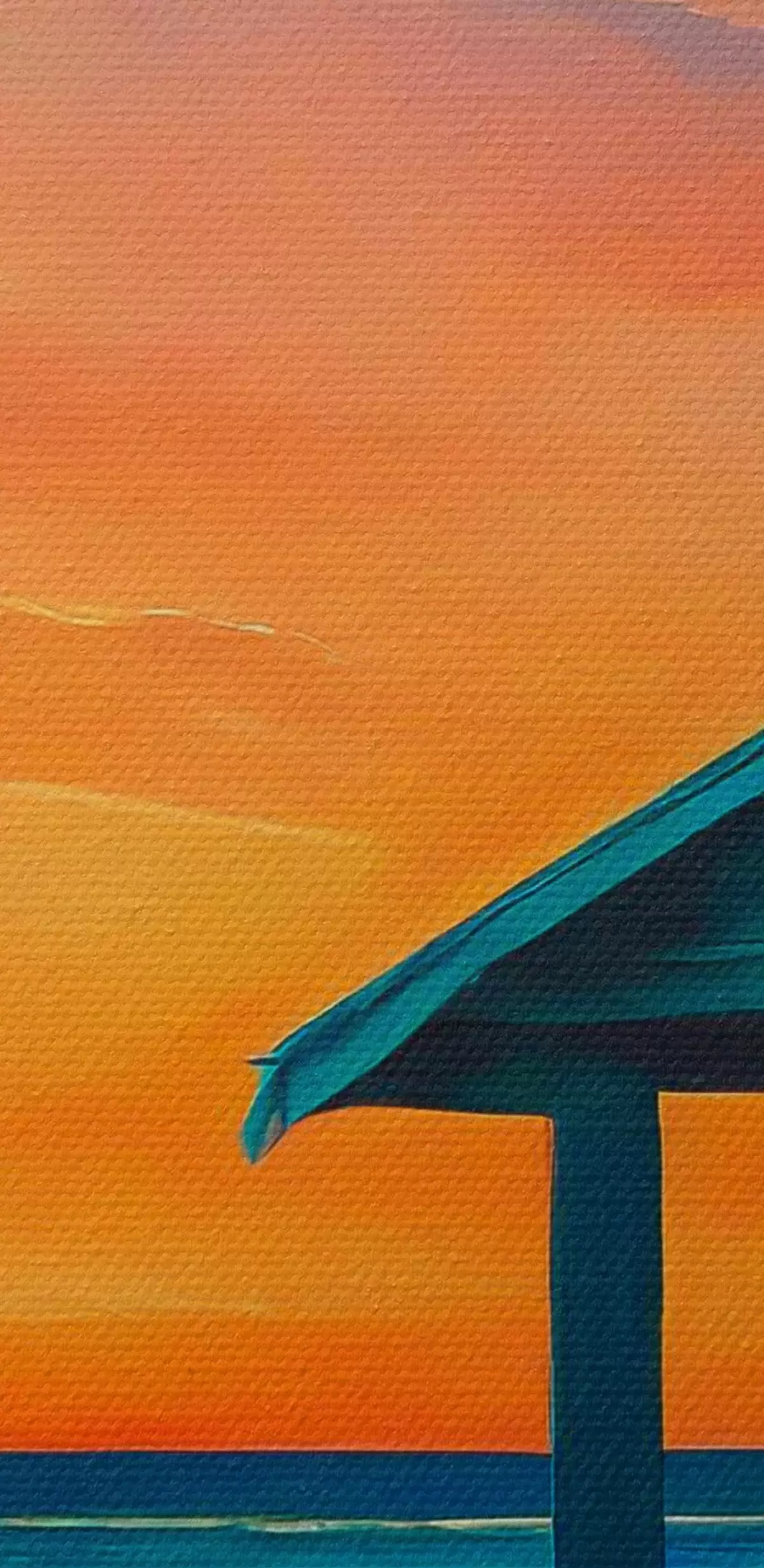 Tableaux rondes Coucher de soleil sur un chalet au bord de l'océan r36580