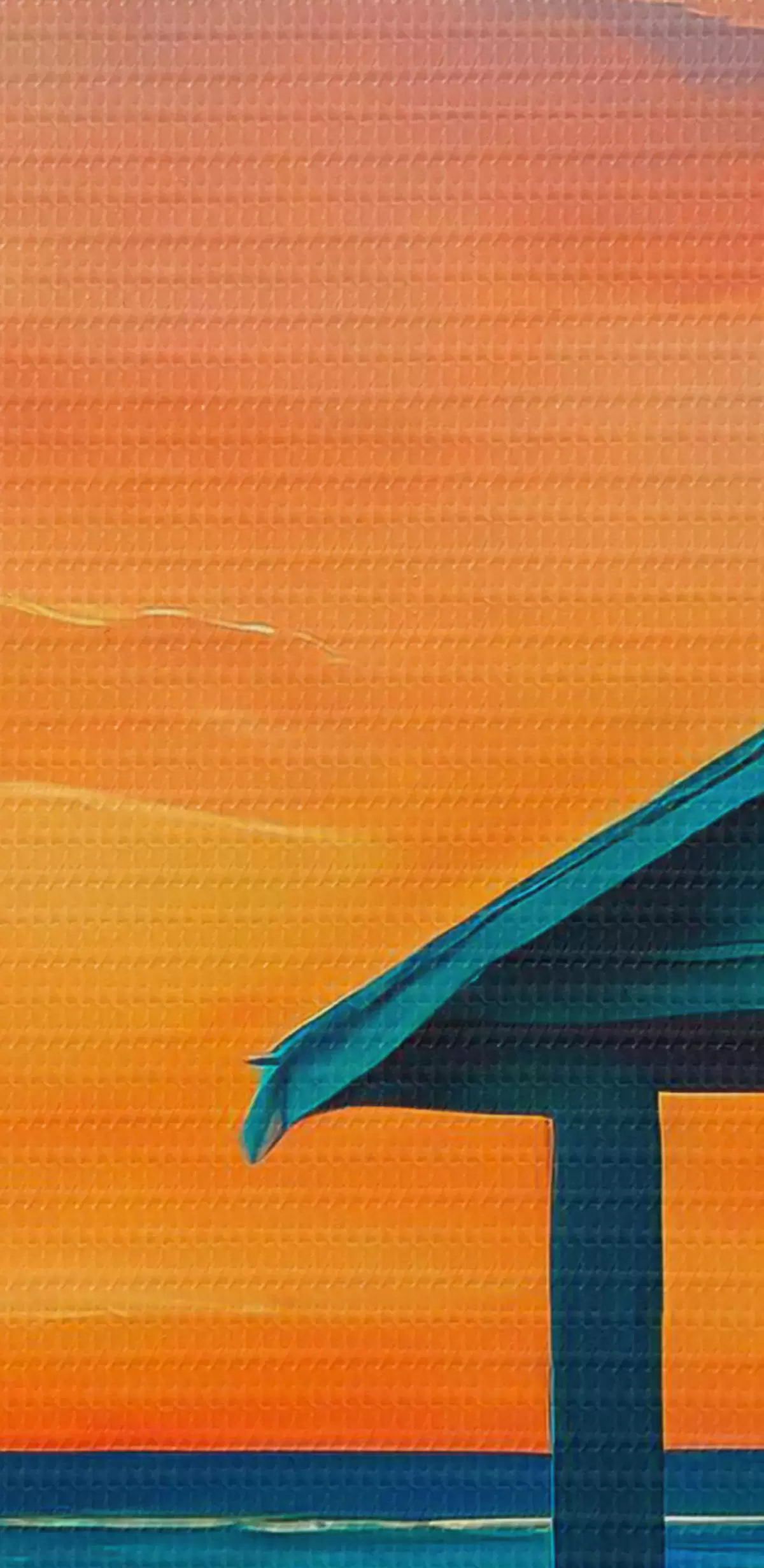 Tableaux rondes Coucher de soleil sur un chalet au bord de l'océan Nr r36580