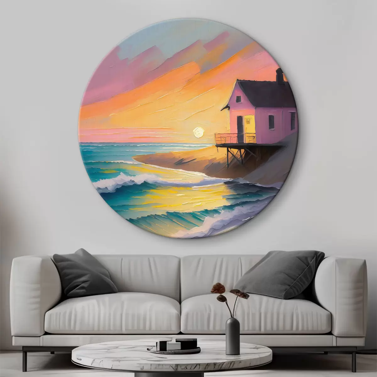 Tableaux rondes Couleurs du coucher de soleil dans un refuge au bord de la mer Nr r36583