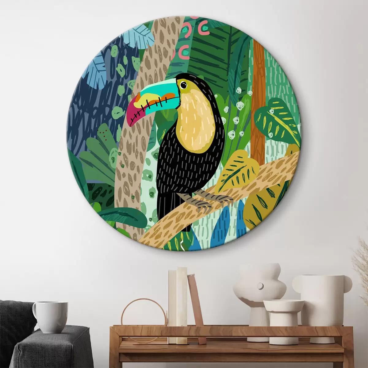 Tableaux rondes Toucan dans la jungle r36595