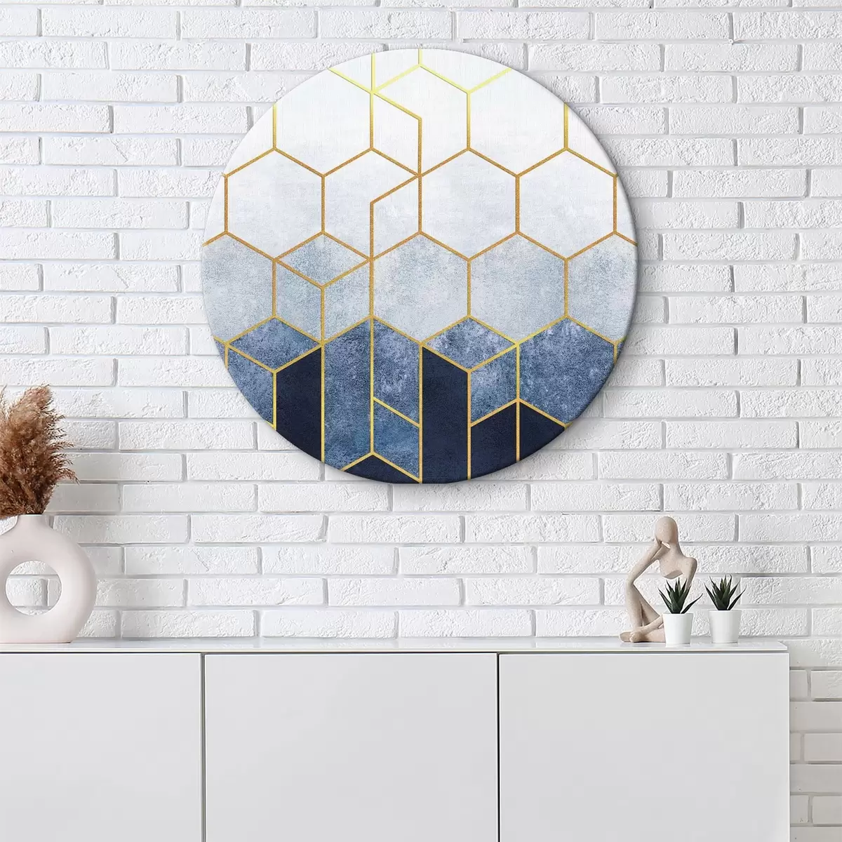 Tableaux rondes Élégant motif géométrique en bleu et blanc r36601