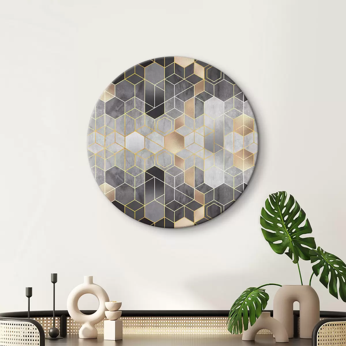 Tableaux rondes Élégant motif hexagonal dans des couleurs neutres Nr r36602