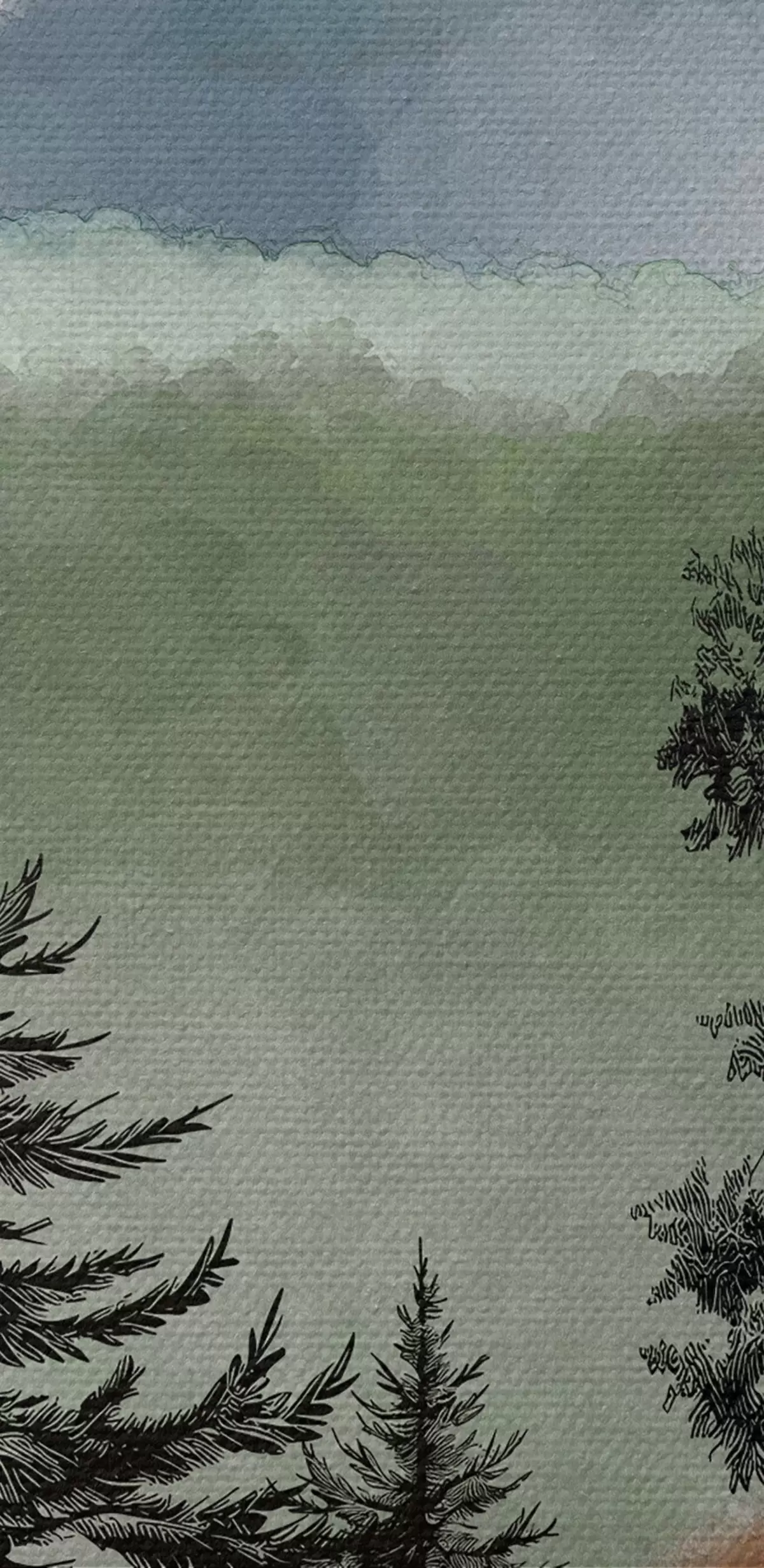 Tableaux rondes Aquarelle de montagnes et d'arbres Nr r36604