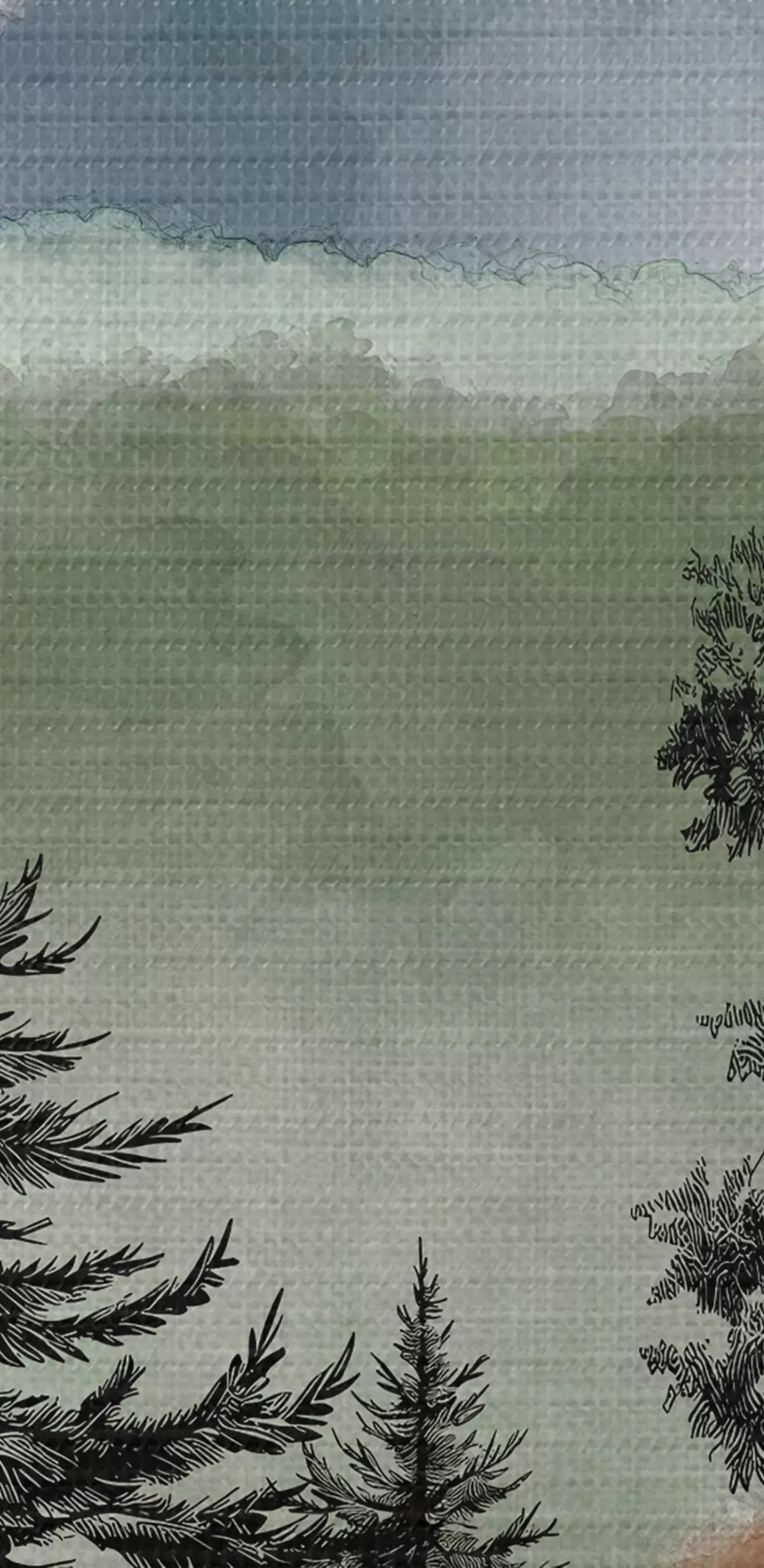 Tableaux rondes Aquarelle de montagnes et d'arbres r36604