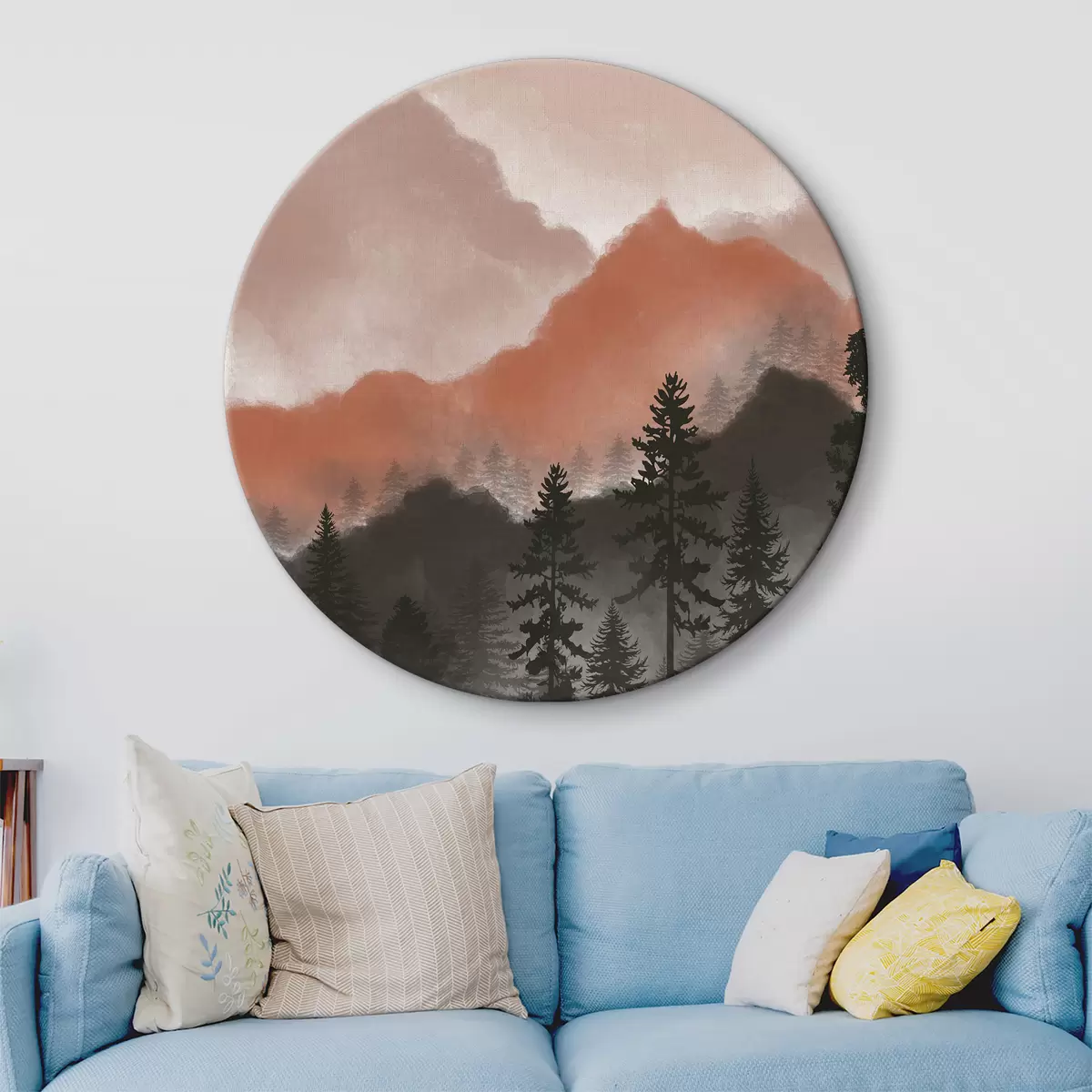 Tableaux rondes Montagnes aquarelles abstraites r36607v2