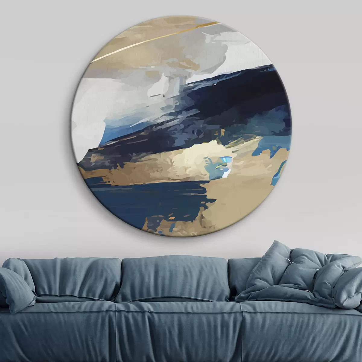 Tableaux rondes Abstraction expressive grise et bleue avec de l'or r36621