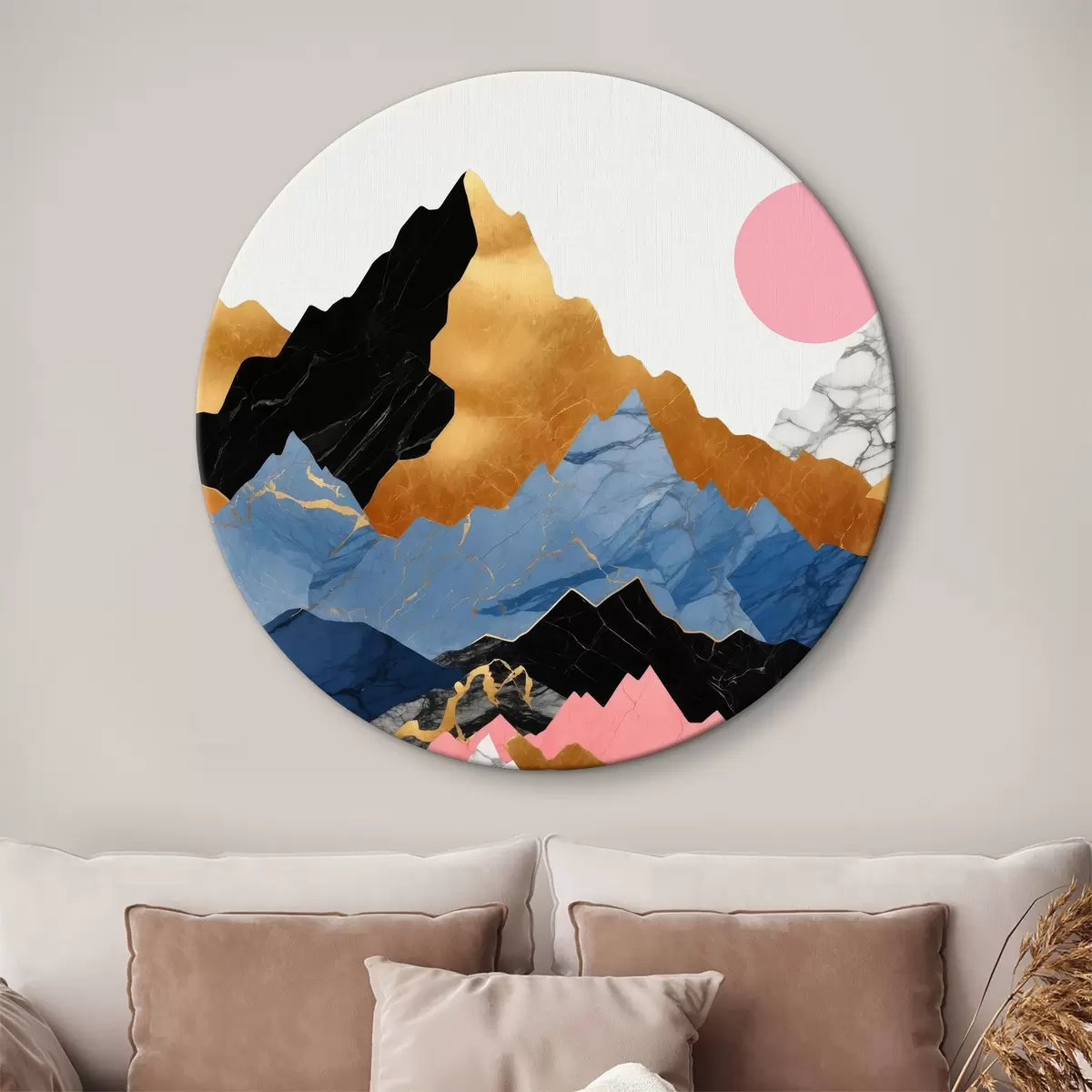 Tableaux rondes Couches de montagnes abstraites avec soleil rose Nr r36643