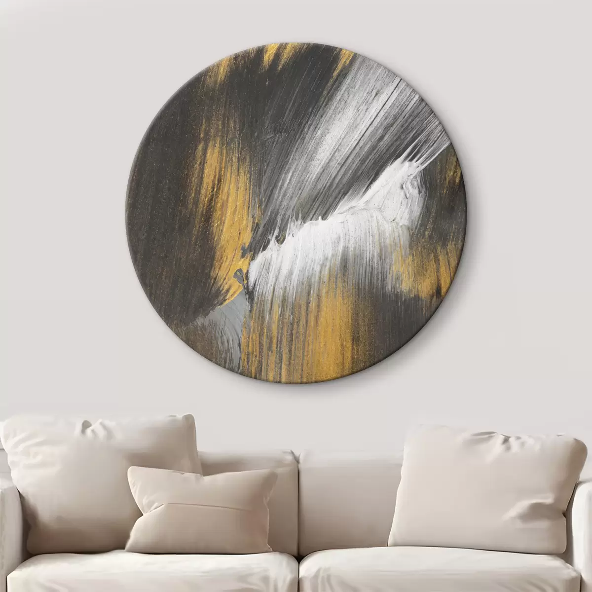Tableaux rondes Coups de pinceau dans les tons de gris et d'ambre r36672