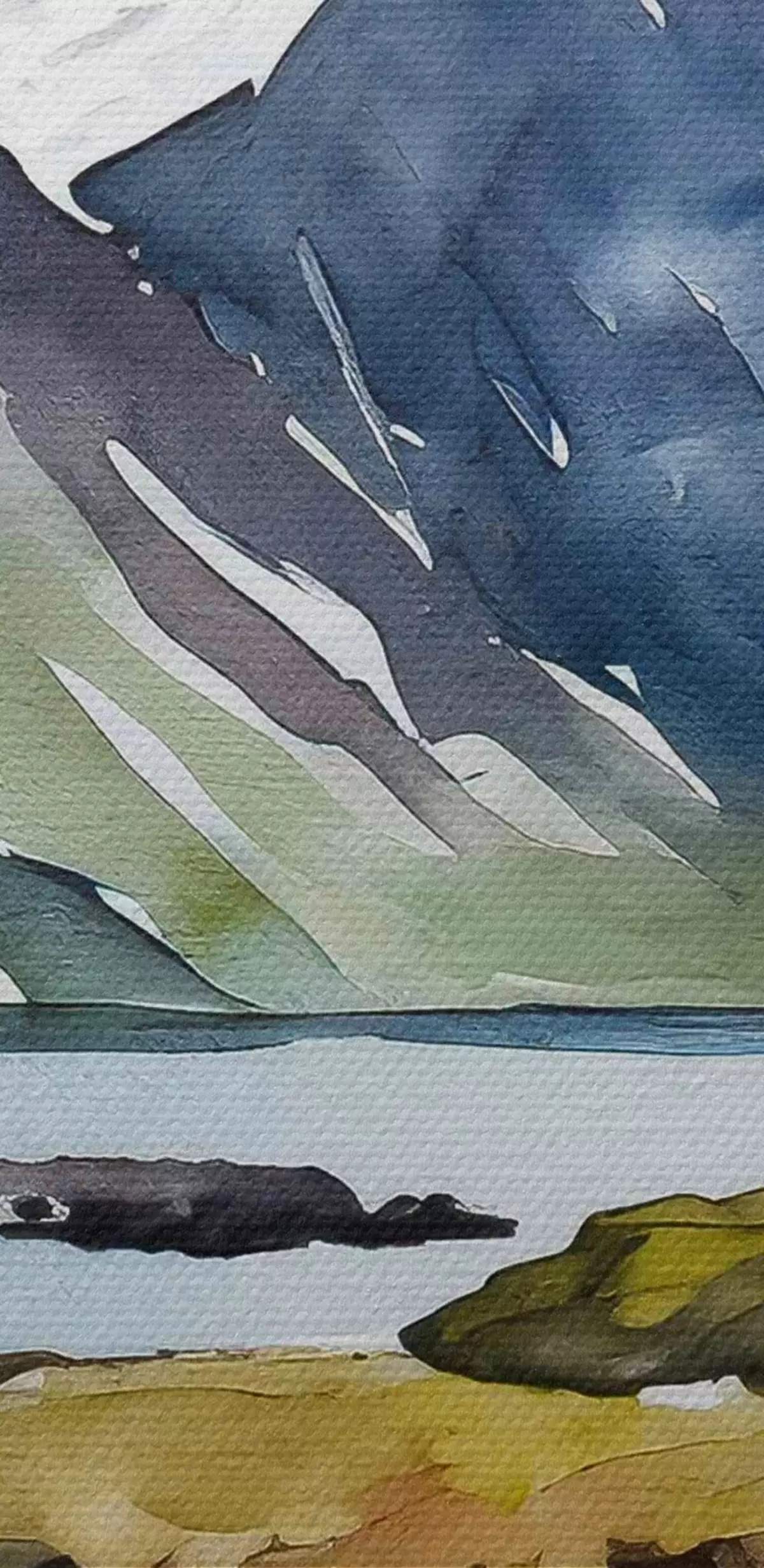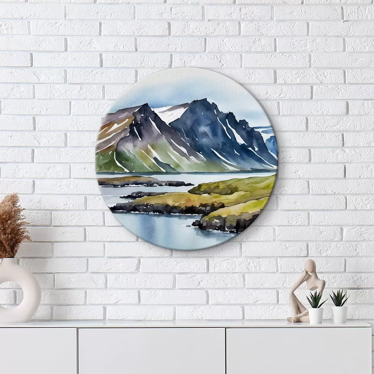 Tableaux rondes Aquarelle représentant un lac et des montagnes Nr r36679