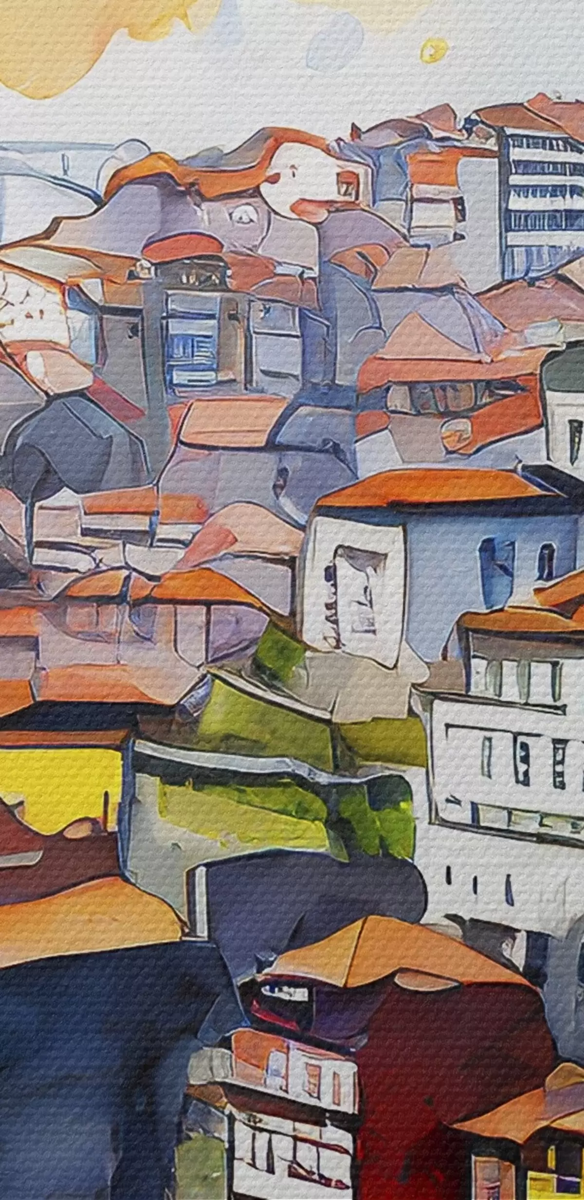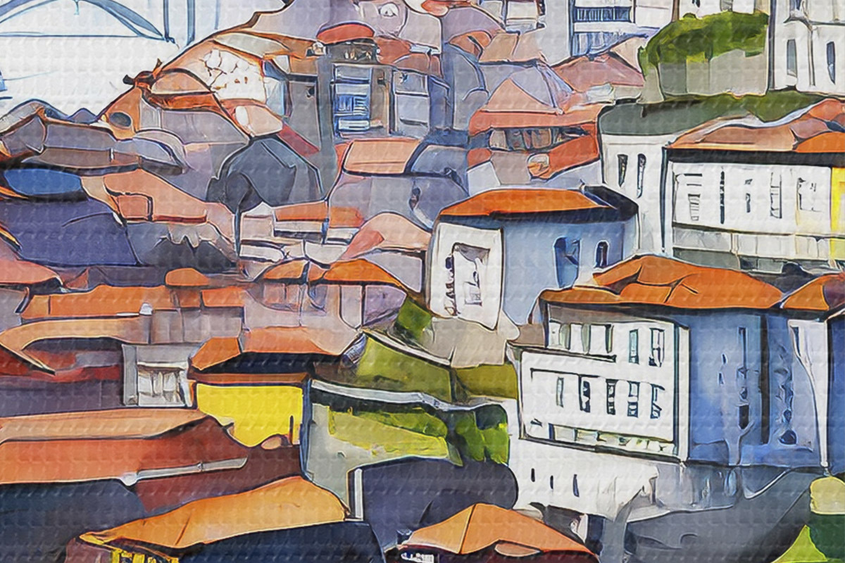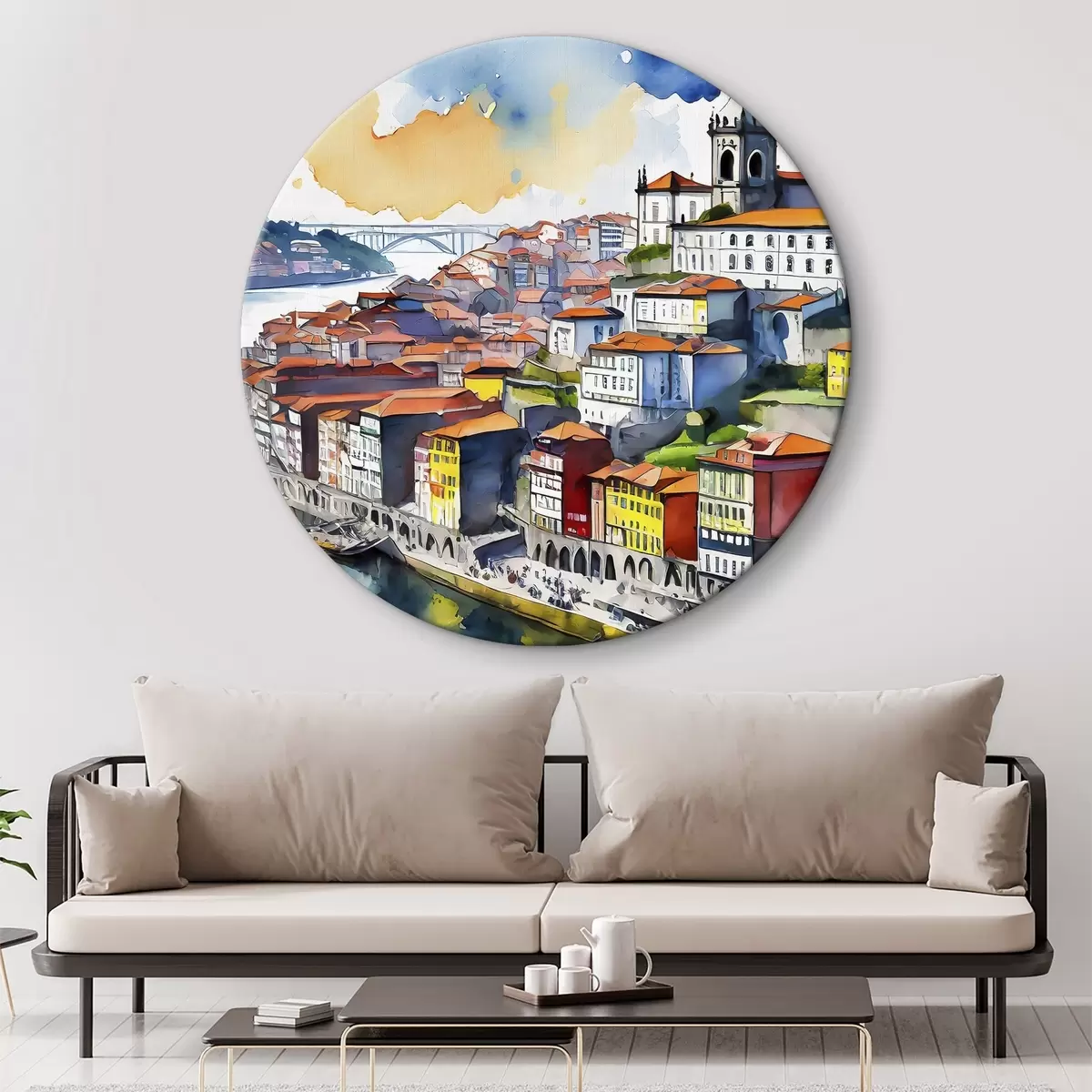 Tableaux rondes Aquarelle de la ville de Porto, Portugal, dessin d'architecture r36680