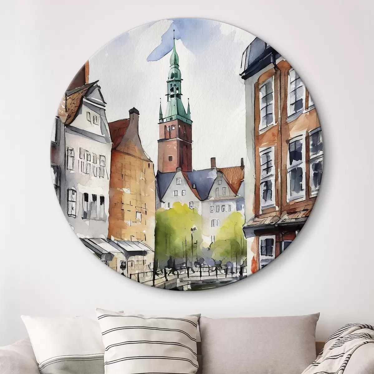 Tableaux rondes Rues danoises, aquarelle, dessin architectural r36682