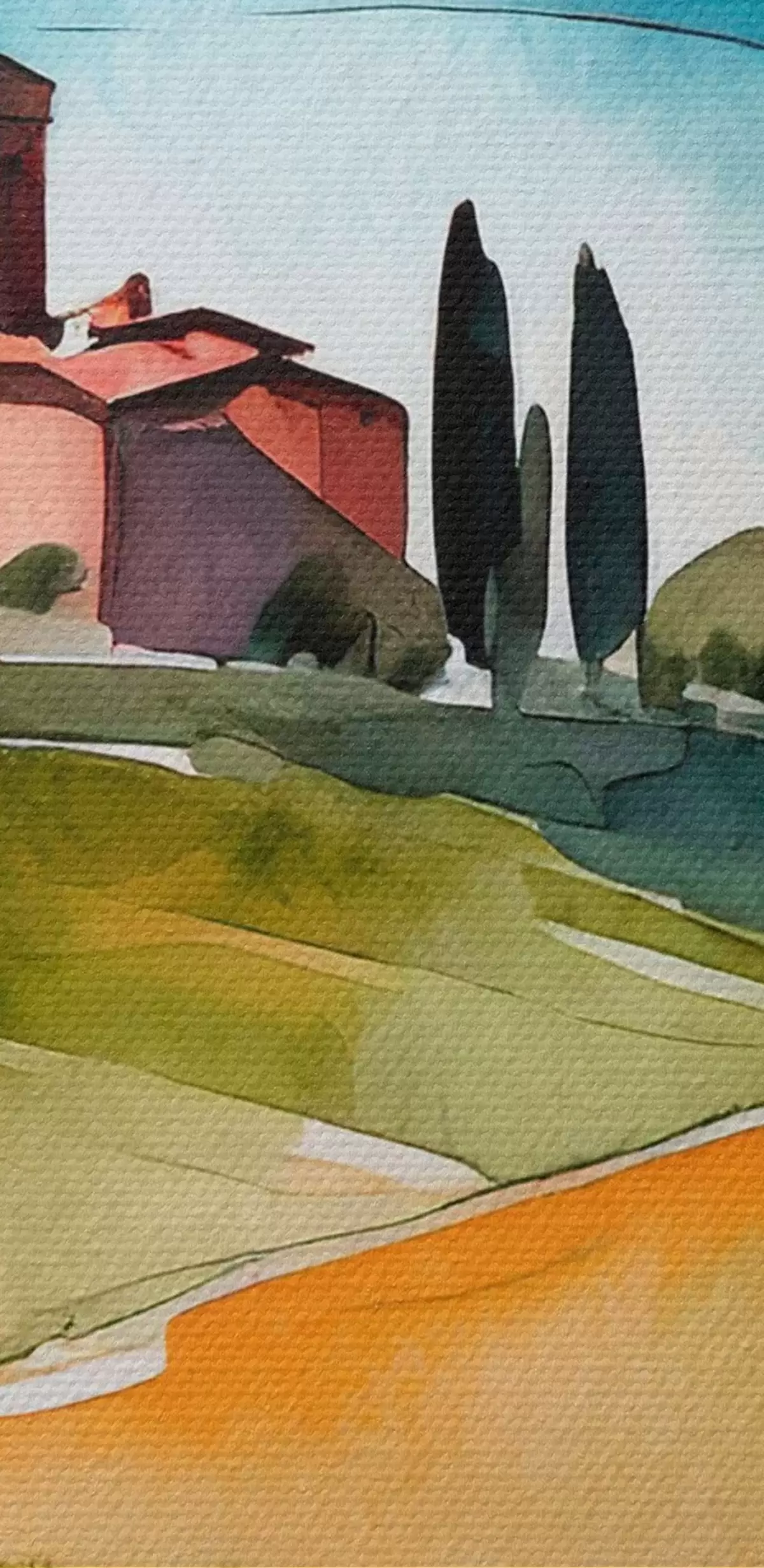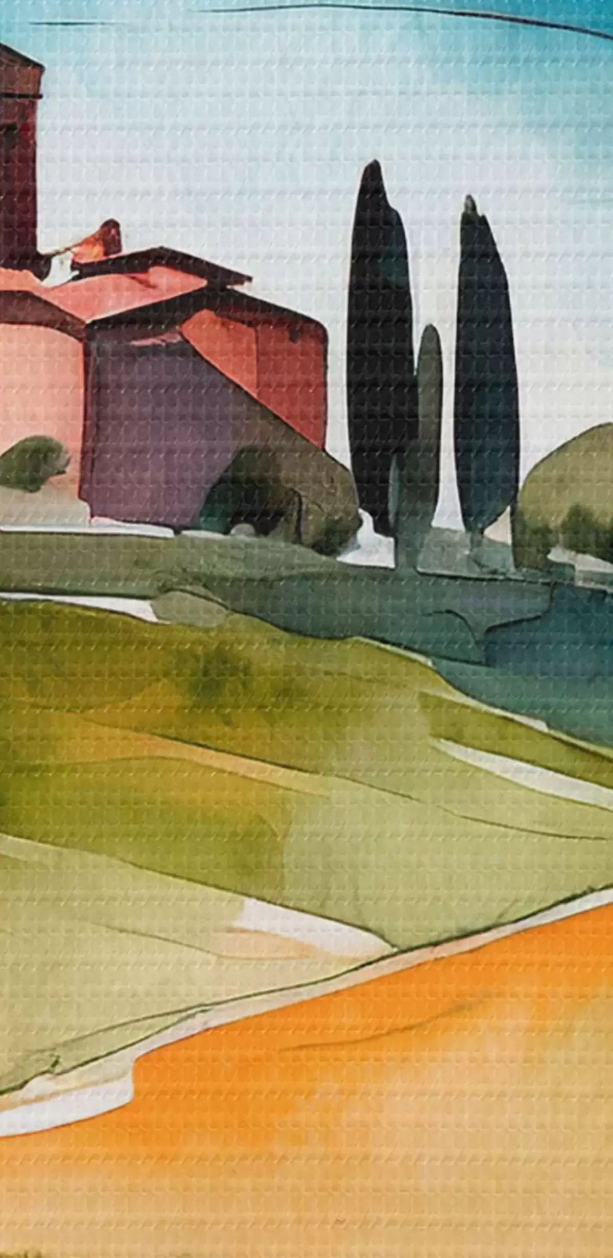 Tableaux rondes Aquarelle, paysage italien, Toscane r36683