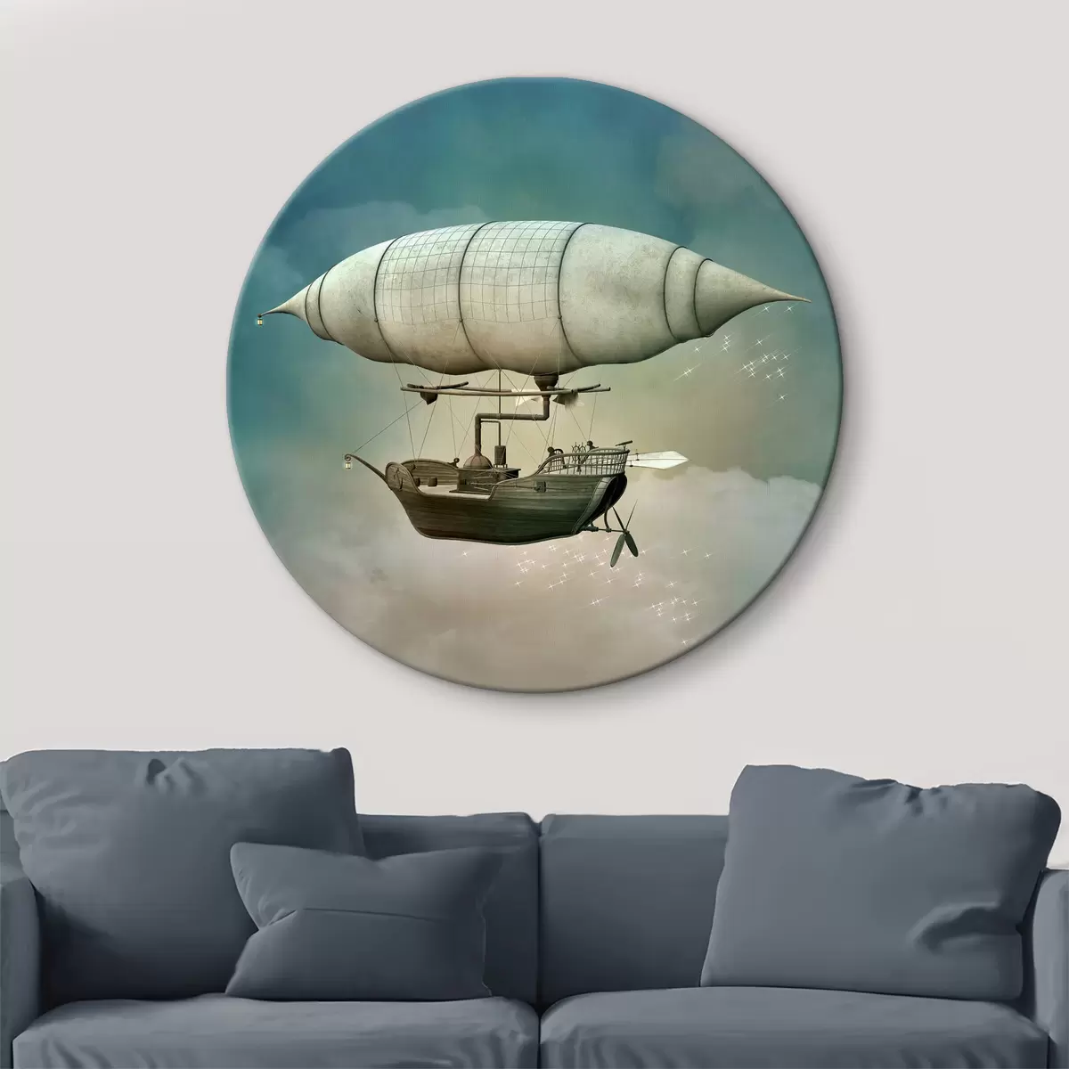 Tableaux rondes Dirigeable steampunk dans le ciel Nr r36706