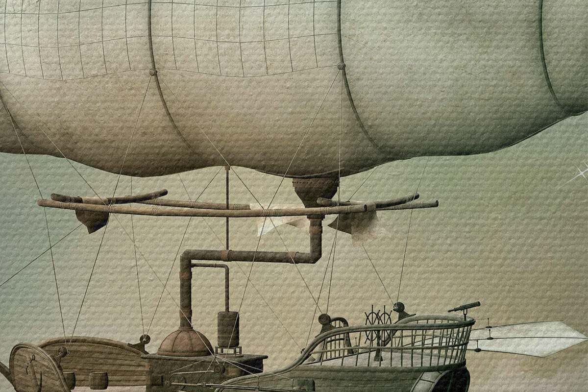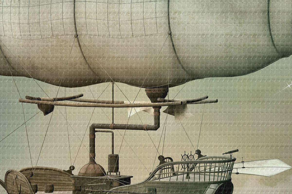 Tableaux rondes Dirigeable steampunk dans le ciel r36706