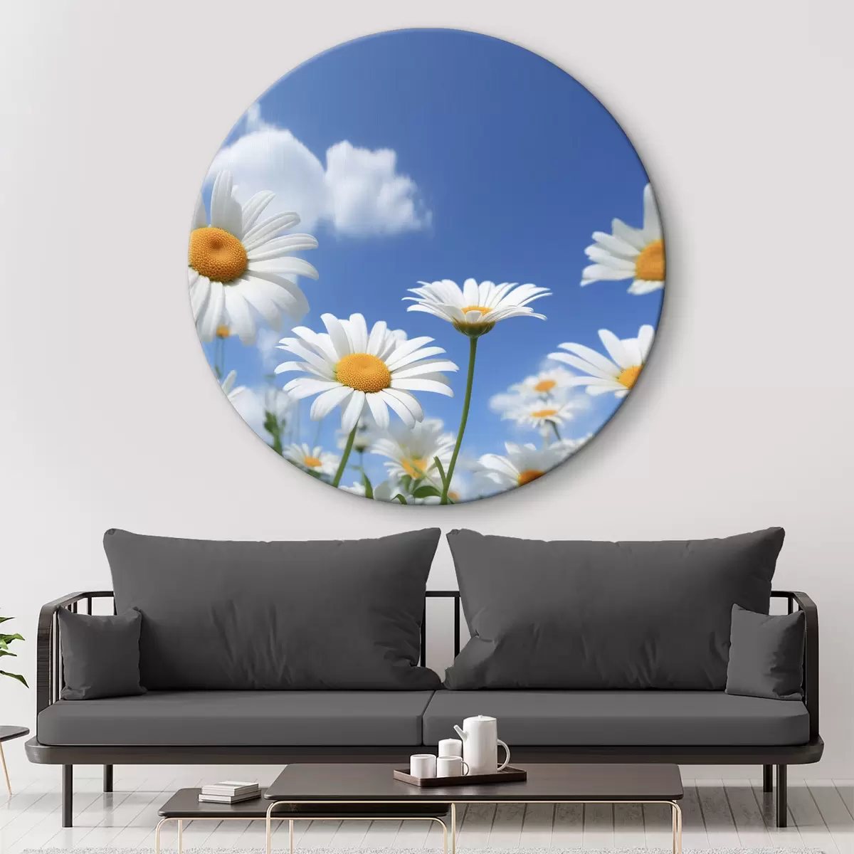 Tableaux rondes Marguerites sur fond de ciel bleu Nr r36802