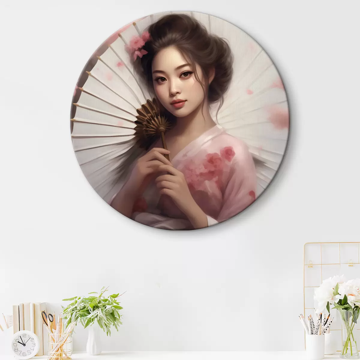 Tableaux rondes Femme tenant un éventail Nr r36803