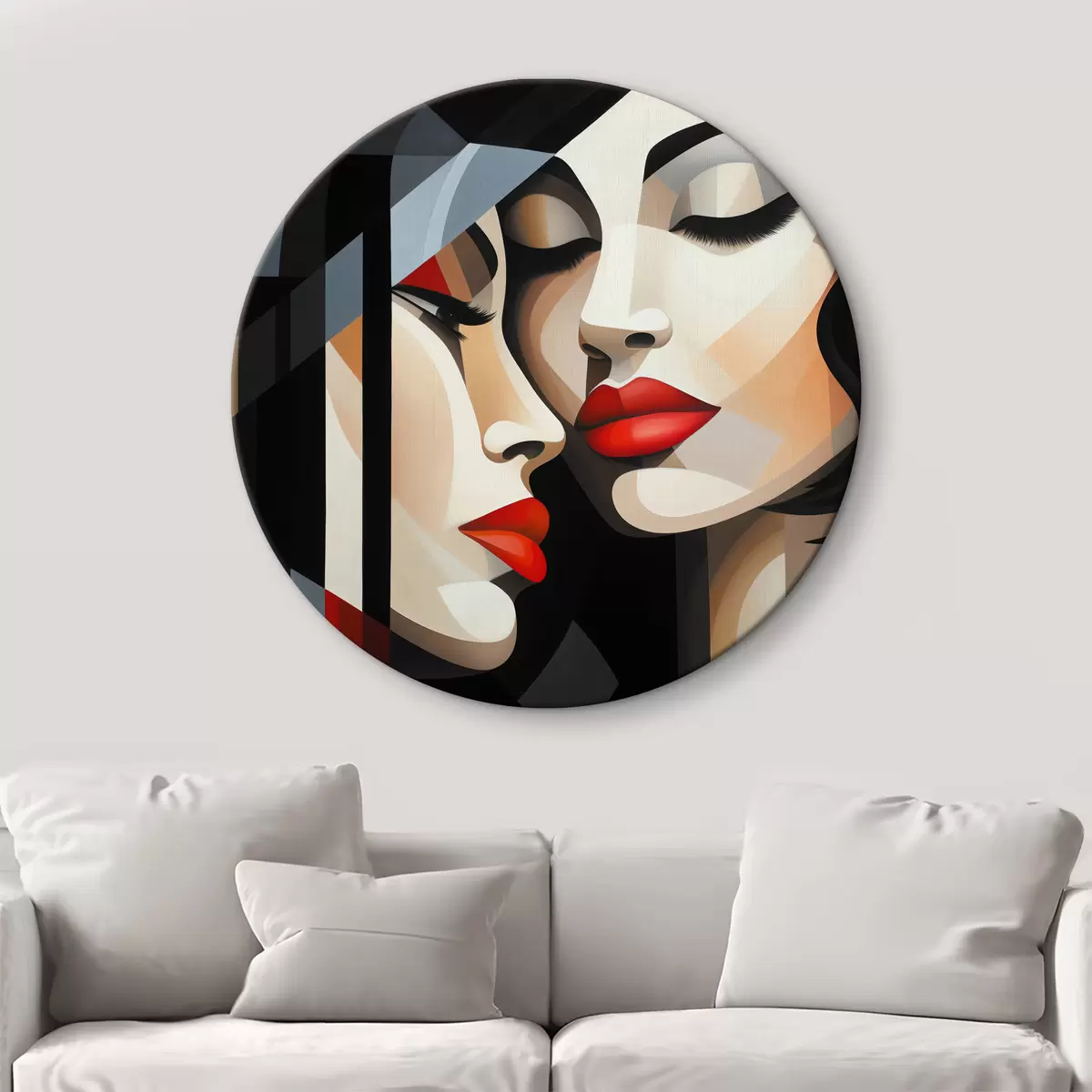 Tableaux rondes Portrait de deux femmes dans le style du cubisme r36825