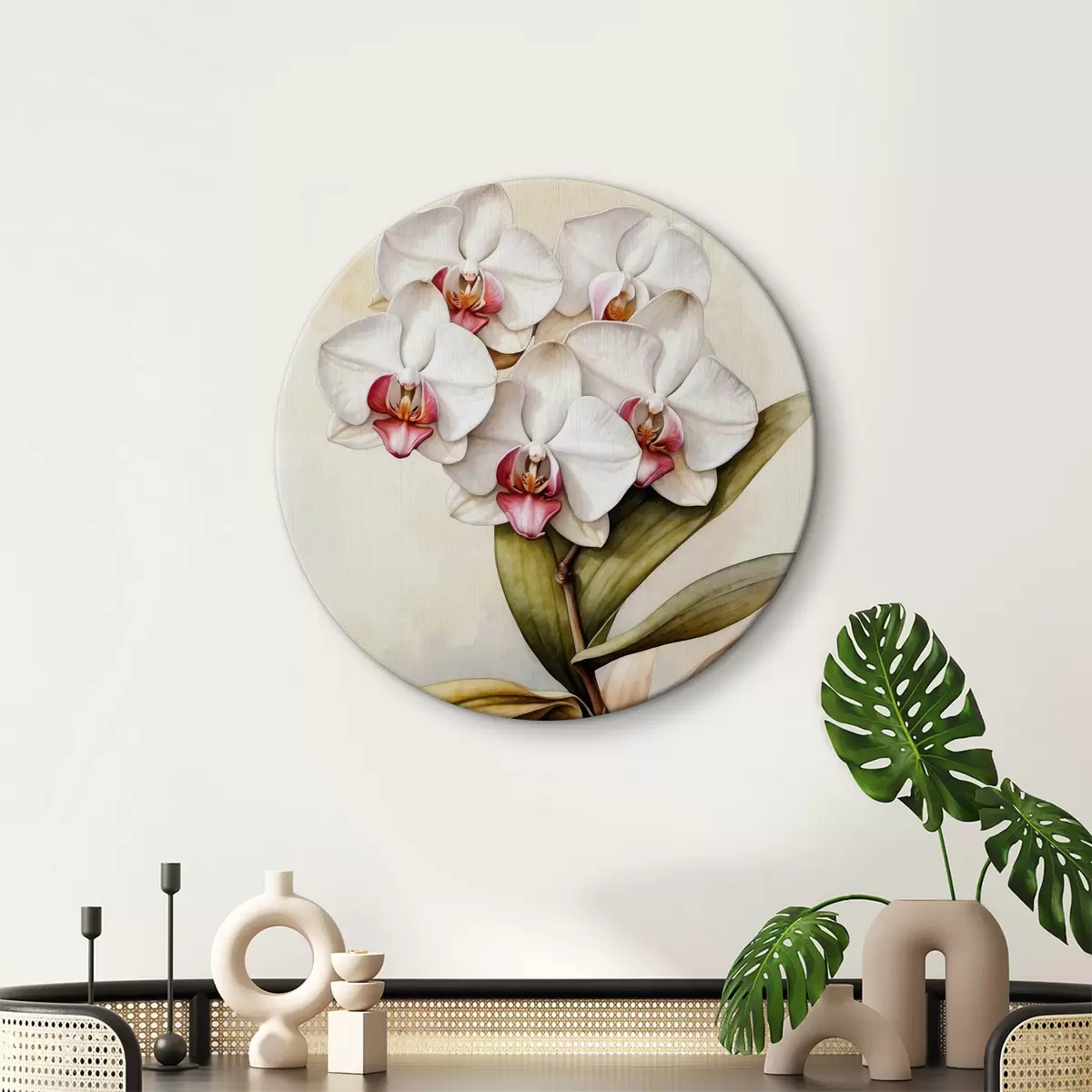 Tableaux rondes Orchidée sur fond d'aquarelle Nr r36829