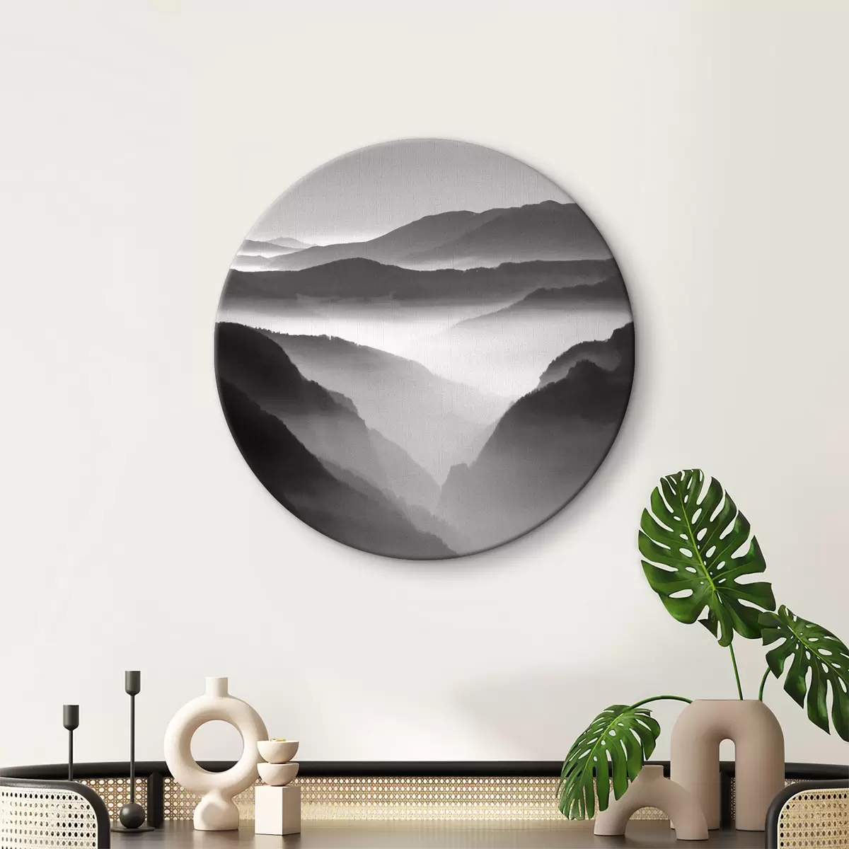 Tableaux rondes Photo de montagnes en noir et blanc r36845