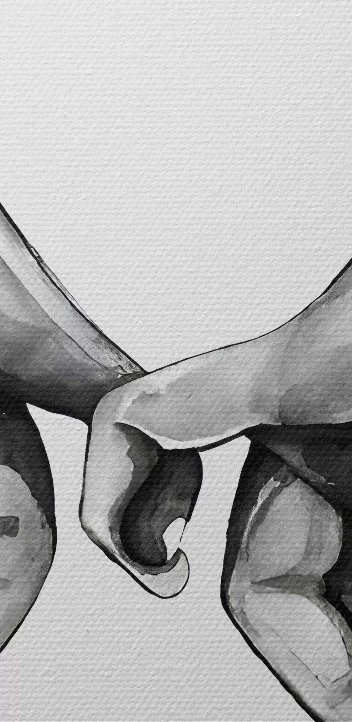 Tableaux rondes Noir et blanc se tenant la main sur fond blanc r36848