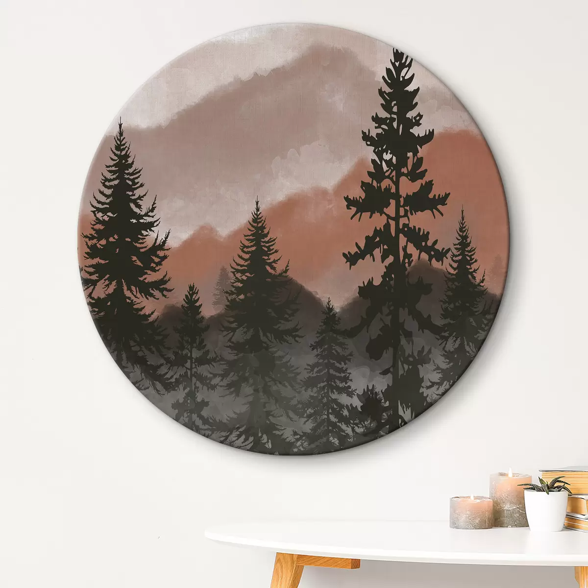 Tableaux rondes Paysage de montagne avec sapins en aquarelle r37017v2