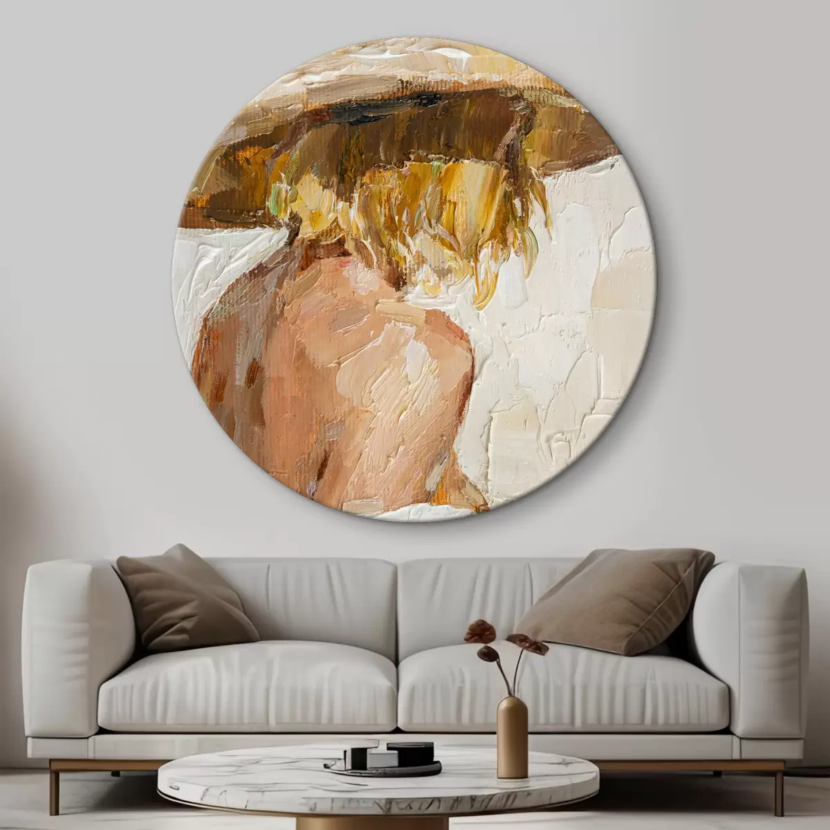 Tableaux rondes Portrait d'une femme de dos à l'huile r37061