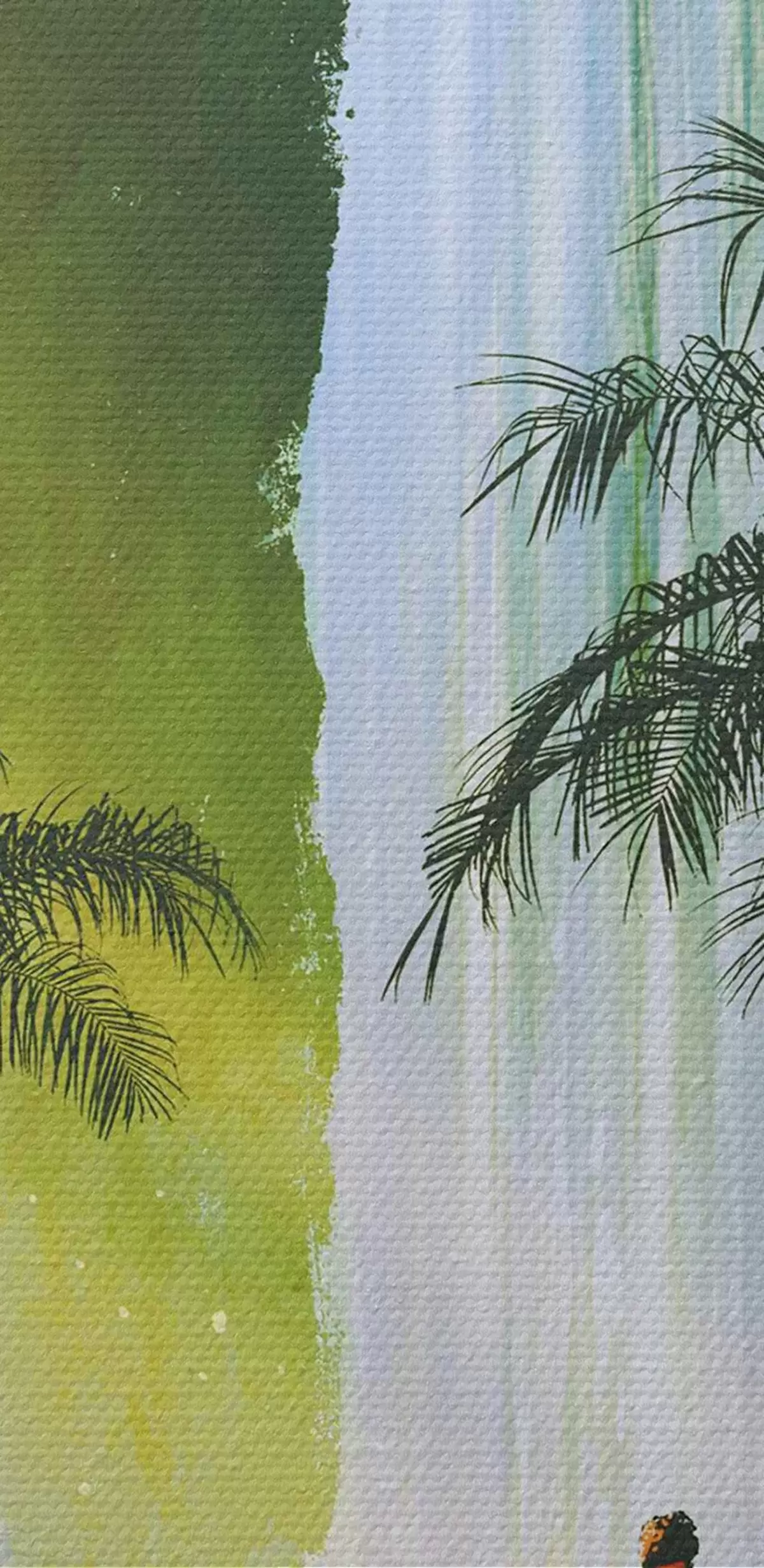 Le tableau peut être accroché immédiatement après réception. Le tableau est tendu sur un châssis en bois de 2 cm de large.