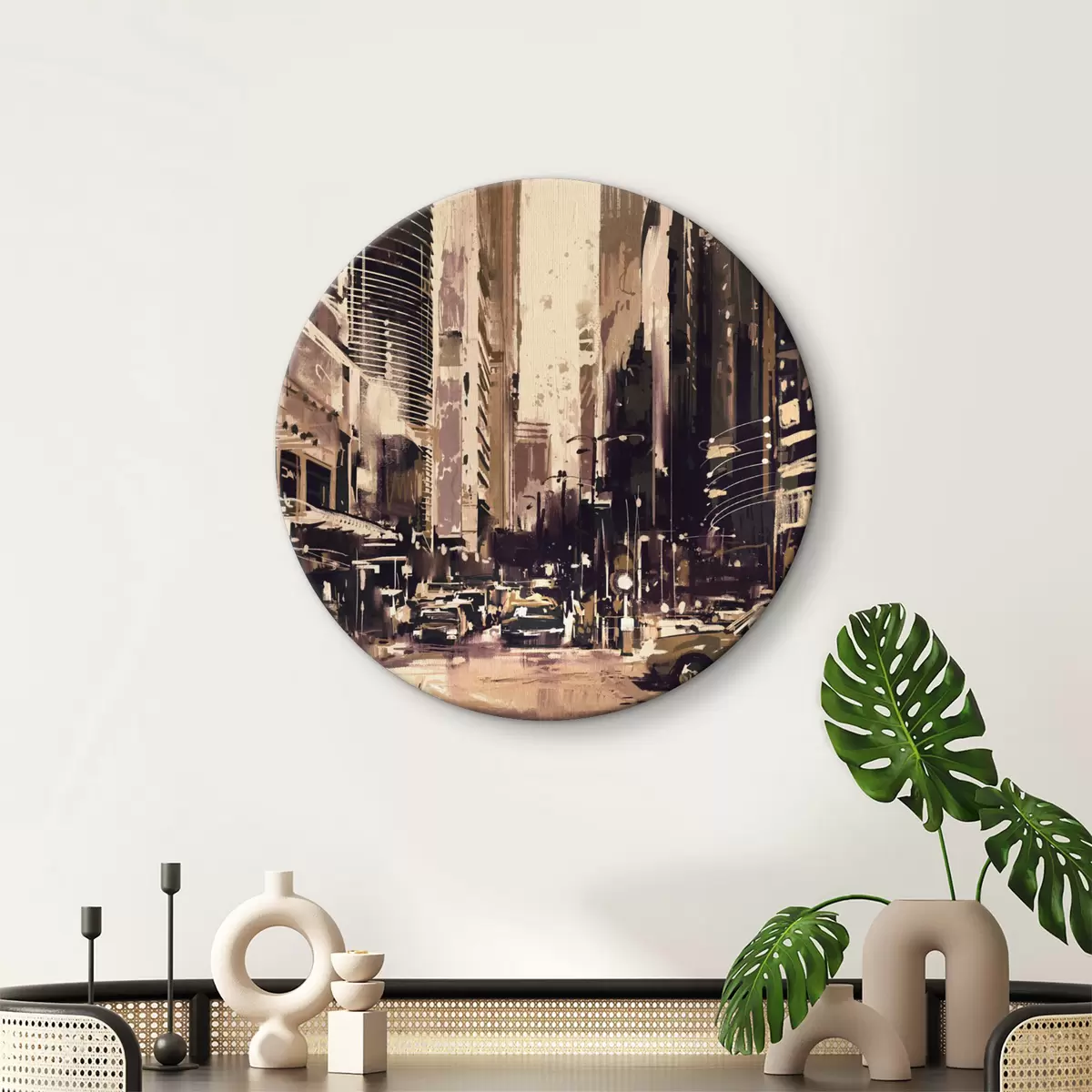 Tableaux rondes Rue de la ville avec de grands bâtiments Nr r37094