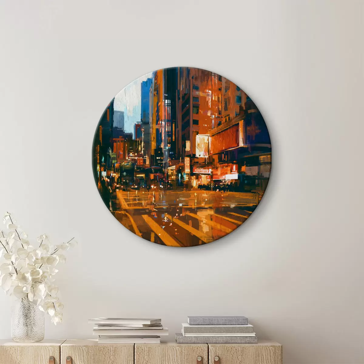 Tableaux rondes Rue de la ville avec des bâtiments et des lumières Nr r37095