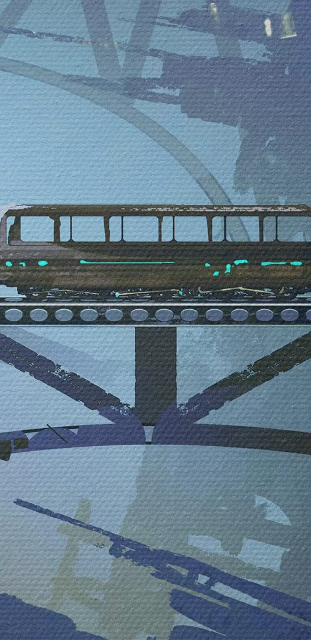 Tableaux rondes Train sur le pont de la ville Nr r37106