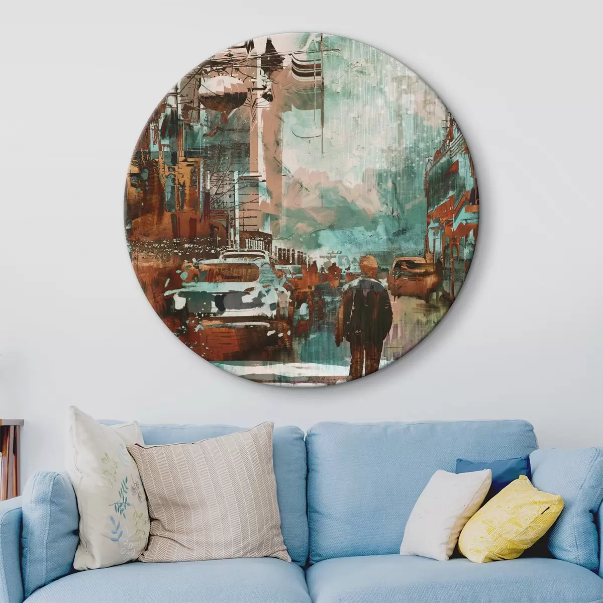 Tableaux rondes Grande métropole rétro en style grunge Nr r37112
