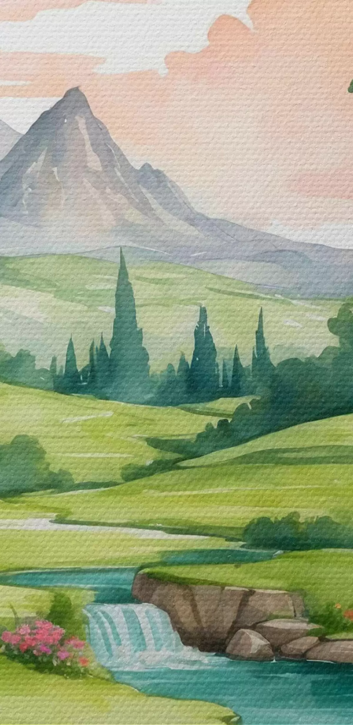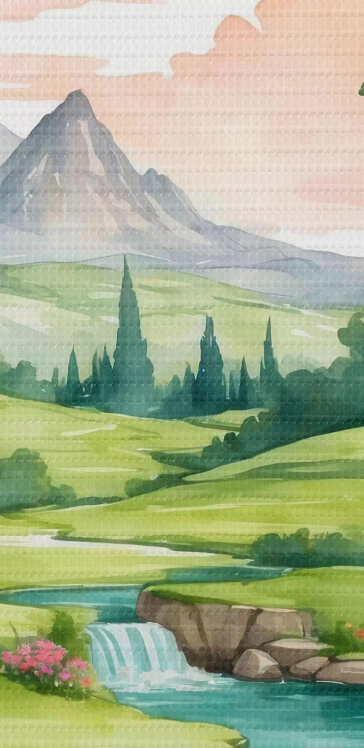 Tableaux rondes Aquarelle représentant une rivière et des fleurs Nr r37116