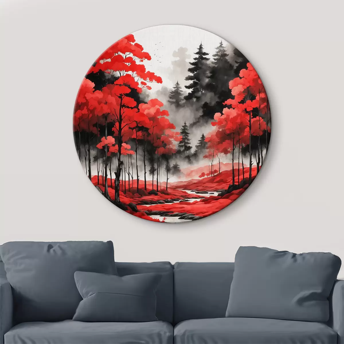 Tableaux rondes Forêt noire et rouge à l'aquarelle r37122