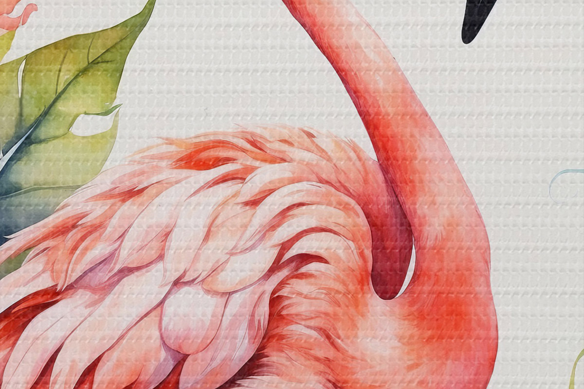 Tableaux rondes Flamant avec des fleurs en aquarelle Nr r37125