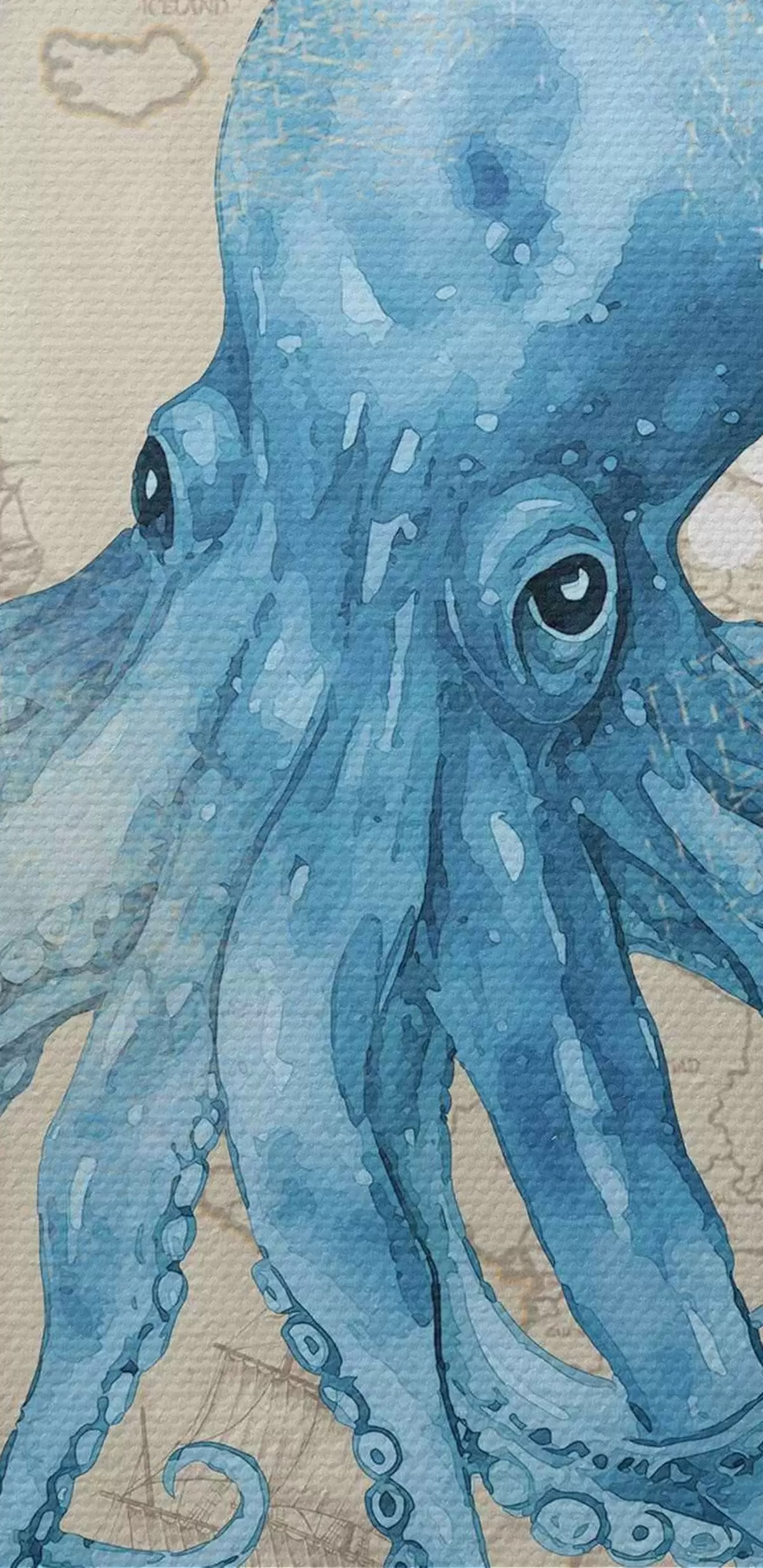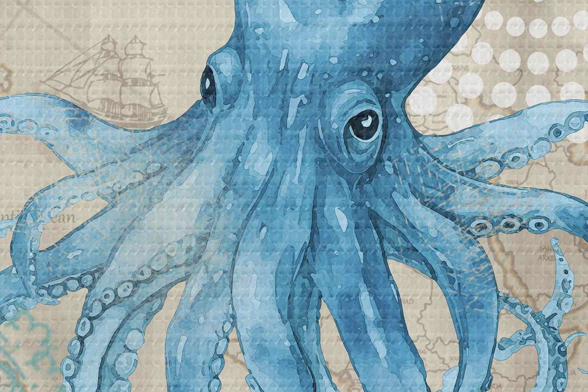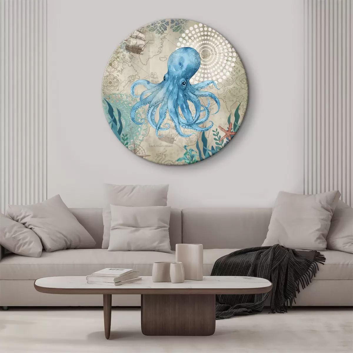 Tableaux rondes Pieuvre bleue avec carte de l'océan Nr r37154