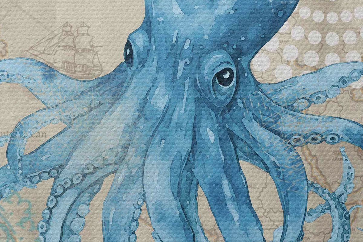 Tableaux rondes Pieuvre bleue avec carte de l'océan r37154