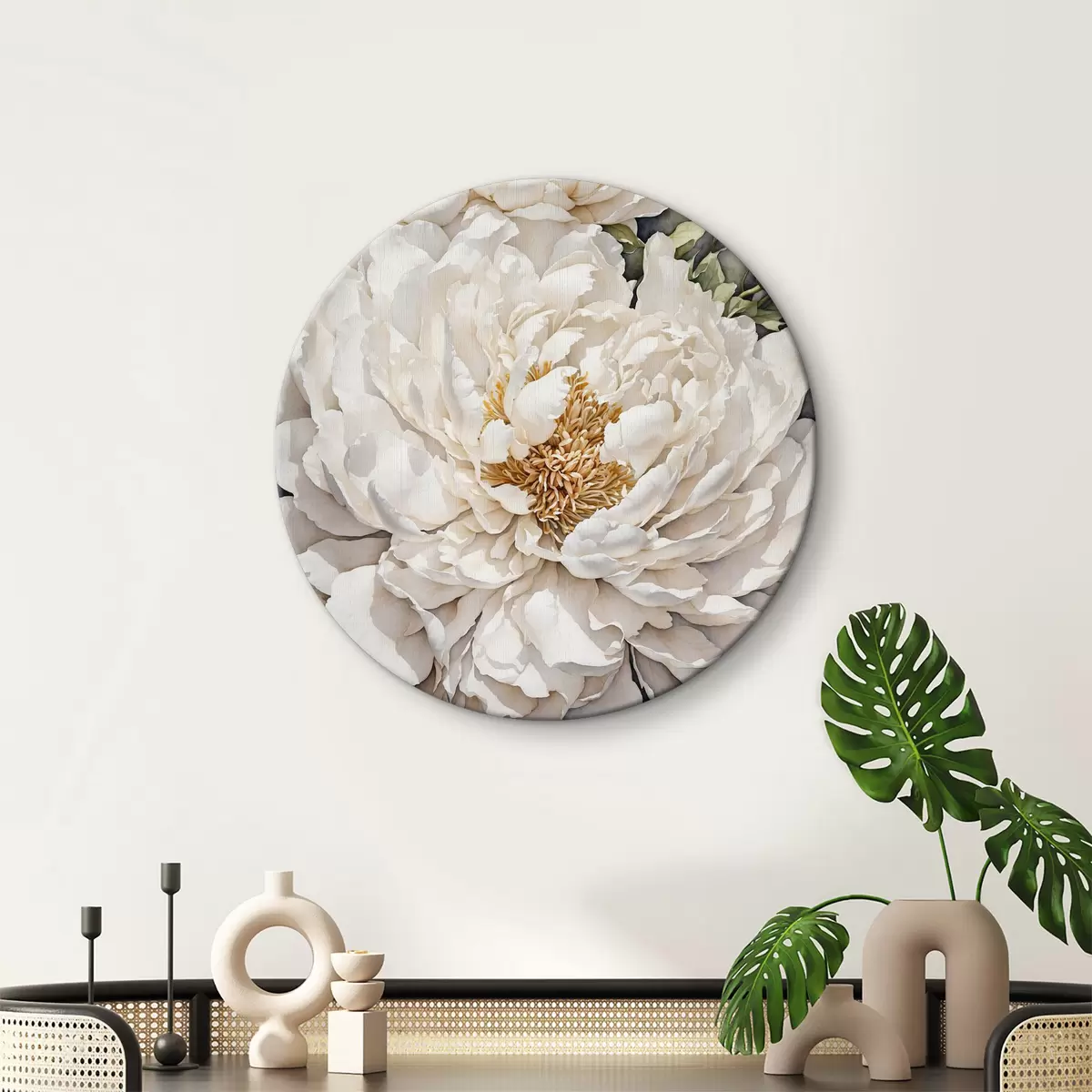 Tableaux rondes Pivoine blanche sur fond gris r37160