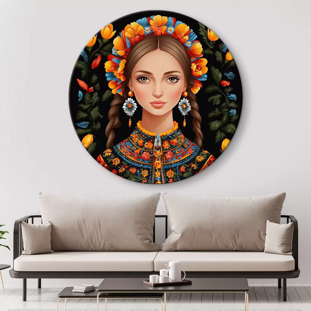 Tableaux rondes Femme avec des tresses et des fleurs dans les cheveux Nr r37165