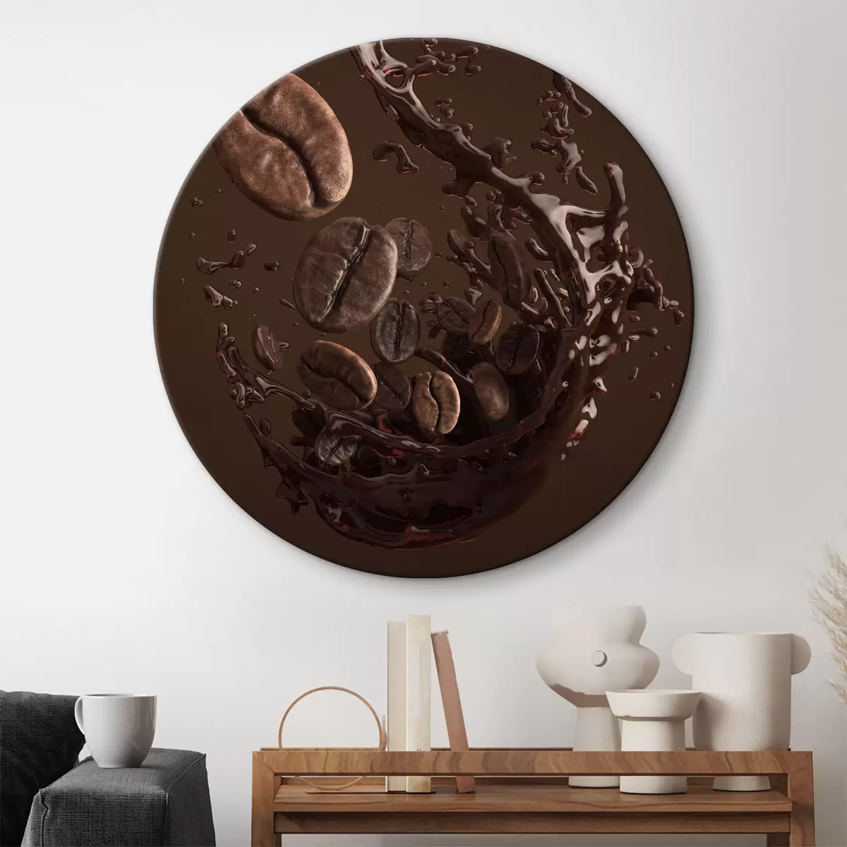 Tableaux rondes Effet graphique du café et des grains de café Nr r37176