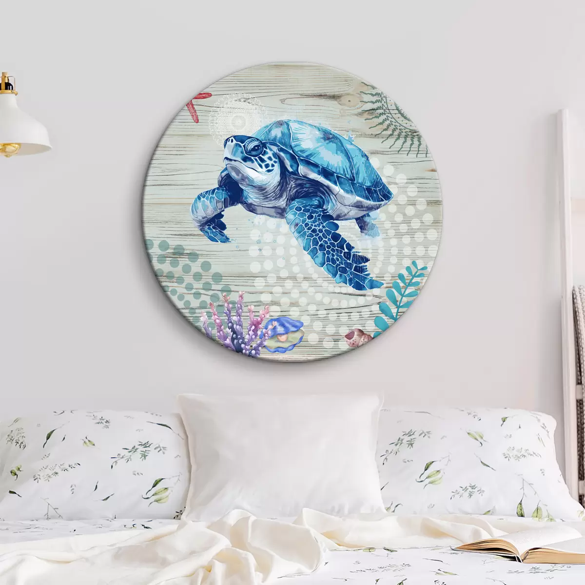Tableaux rondes Abstraction marine avec tortue Nr r37239