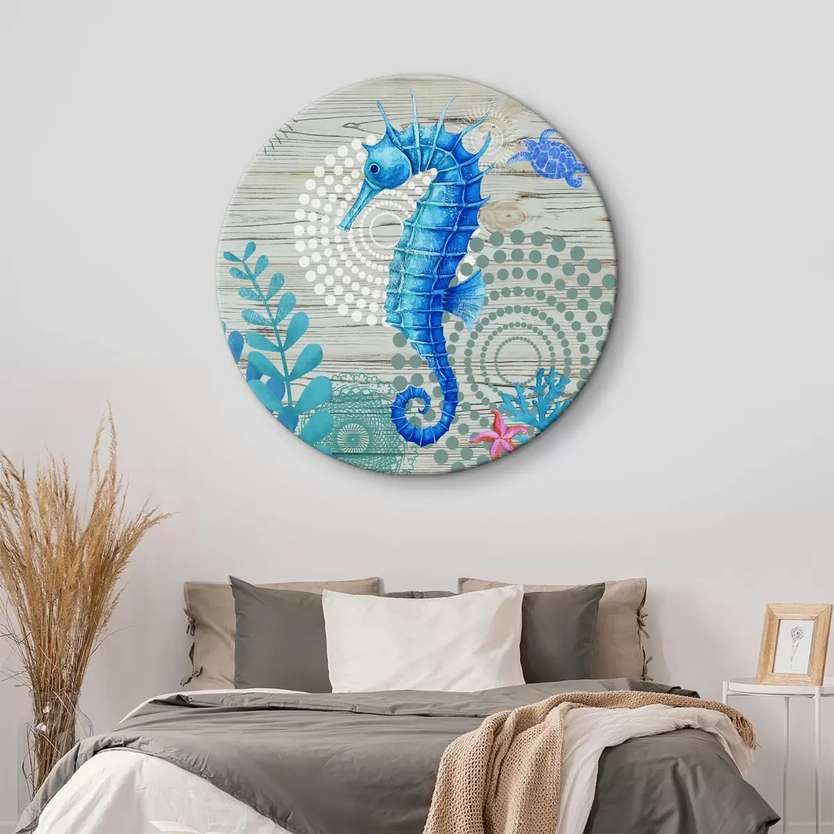 Tableaux rondes Abstraction marine avec hippocampe r37240