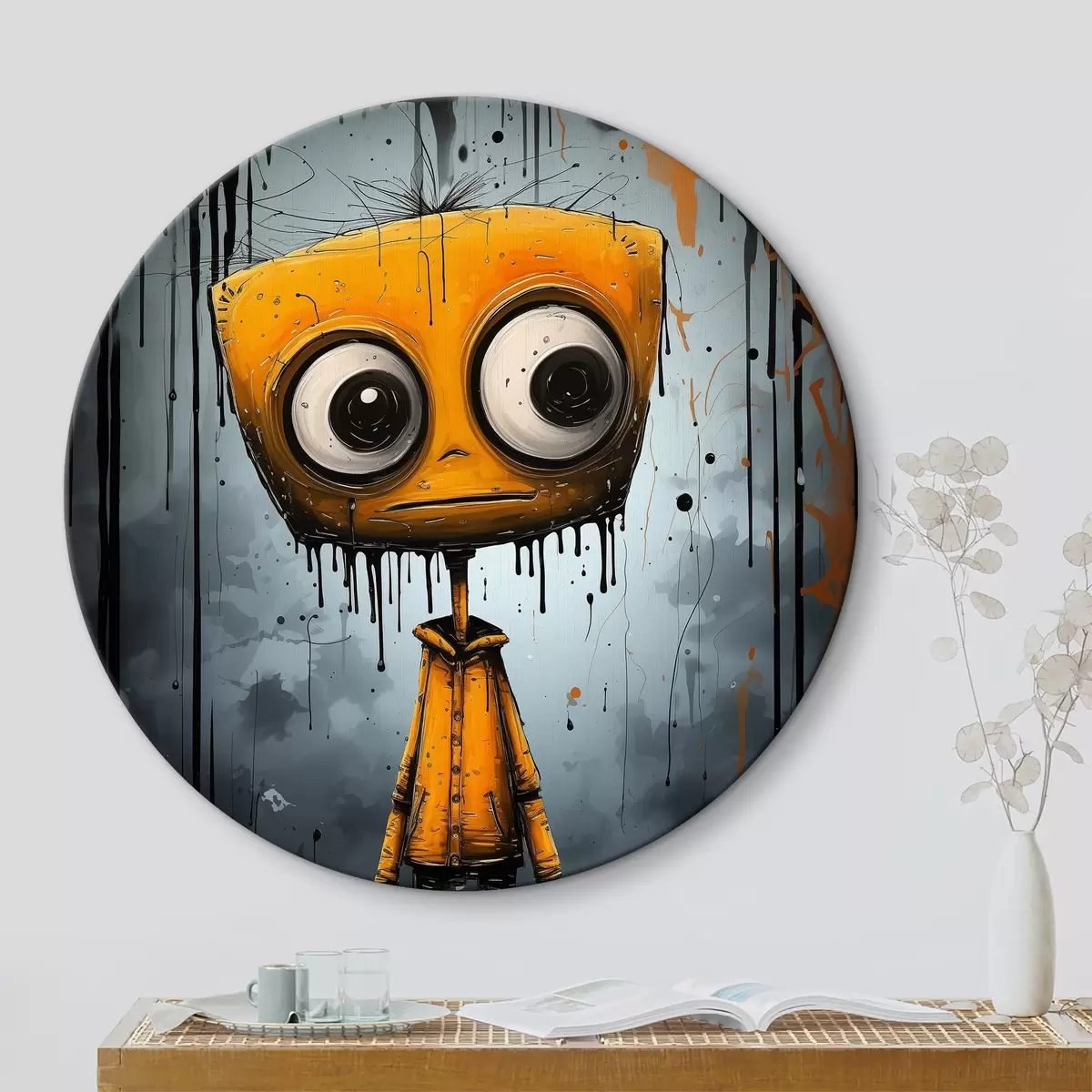 Tableaux rondes Personnage de dessin animé avec une tête carrée et de grands yeux Nr r37254