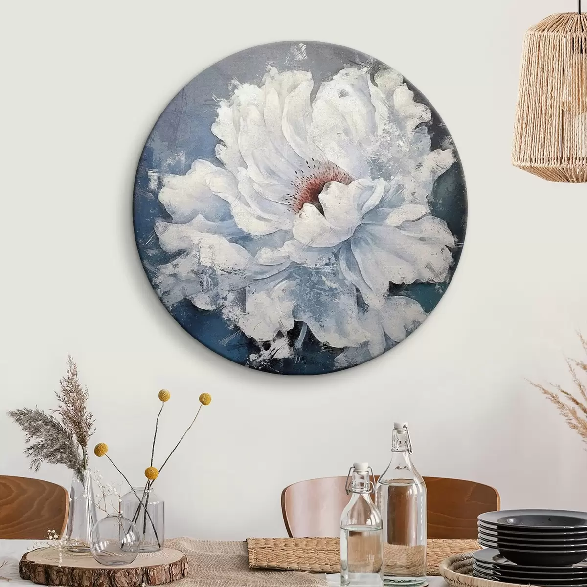 Tableaux rondes Fleur blanche sur fond bleu Nr r37262